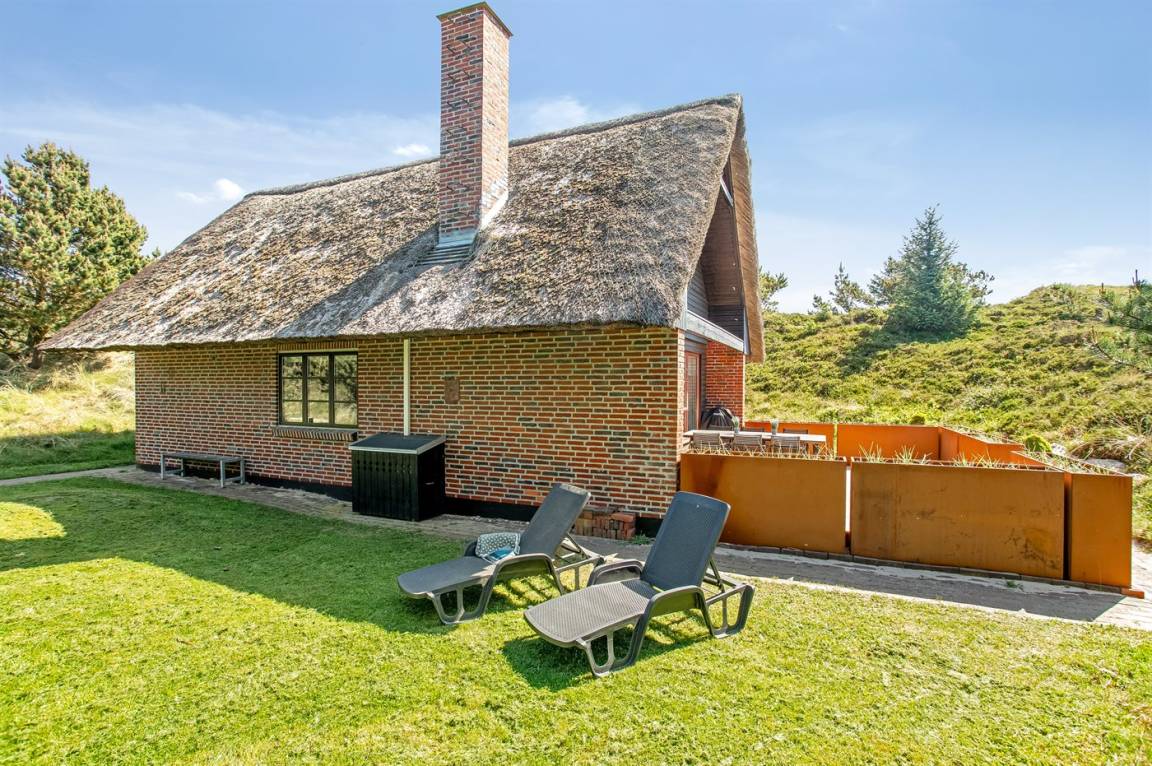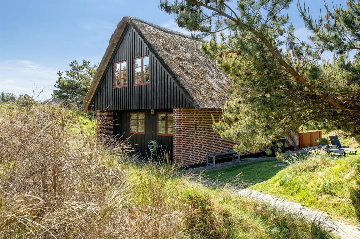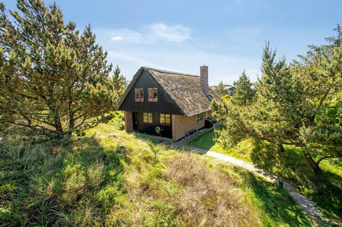 Dieses gemütliche Ferienhaus mit Reetdach liegt auf einem 2.857 m² großen und mit Heidekraut bewachsenen Dünengrundstück, wo Sie vom höchsten Punkt aus das Meer sehen können. Das Meer und Einkaufsmöglichkeiten liegen etwa 500 m entfernt.