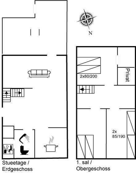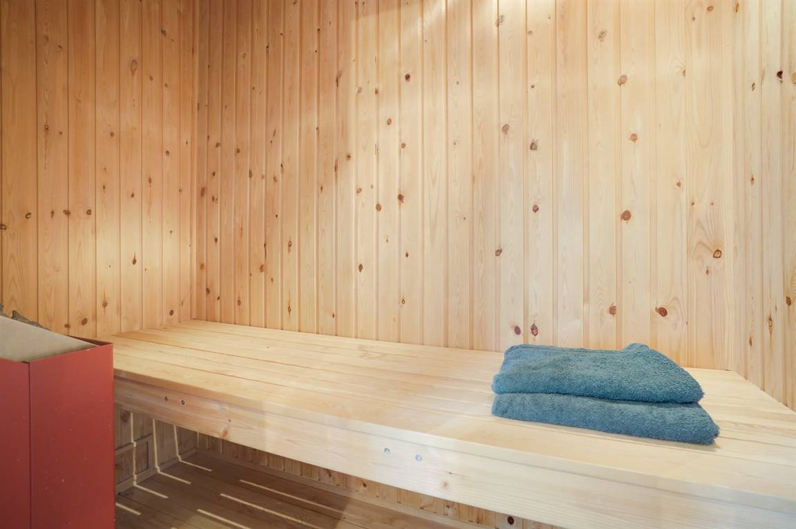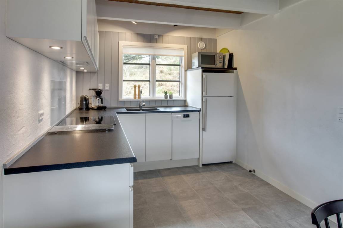 In der gut ausgestatteten Küche gibt es Herd mit Ceranfeld, Dunstabzugshaube, Umluftofen, Mikrowelle, Kühlschrank (160 Liter), Tiefkühlmöglichkeit mit 41 Liter Nutzinhalt., Kaffeemaschine und Wasserkocher. Badezimmer mit beheizbarem Fliesenboden, Duschnische, Waschbecken, Toilette und Zugang zu einer schönen Sauna, in der Sie sich so richtig entspannen können.