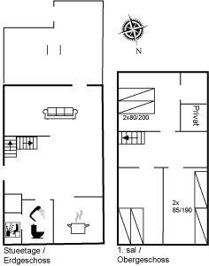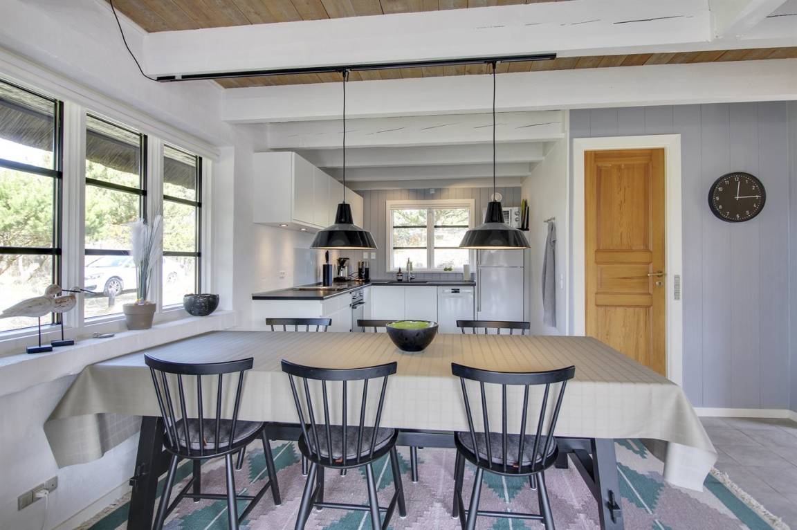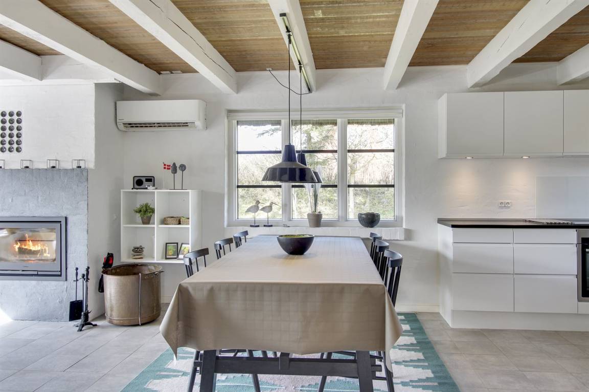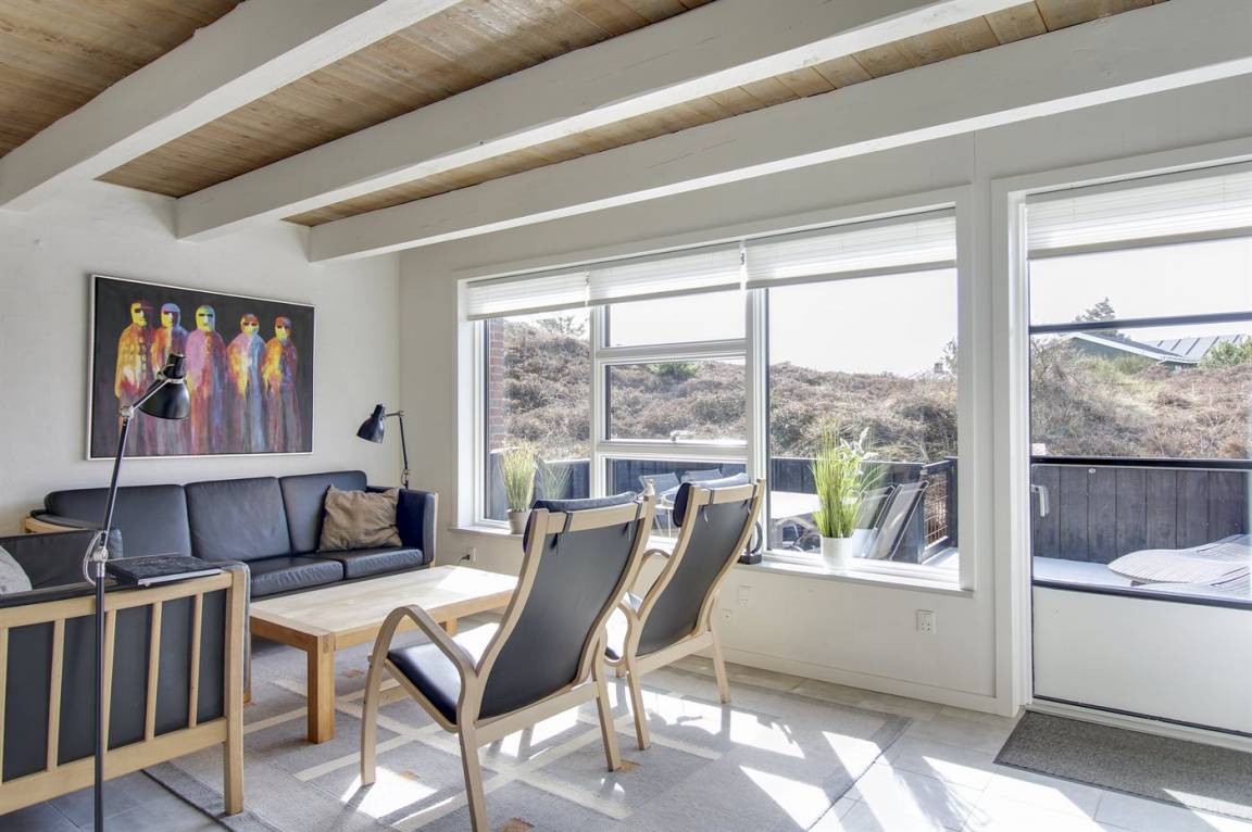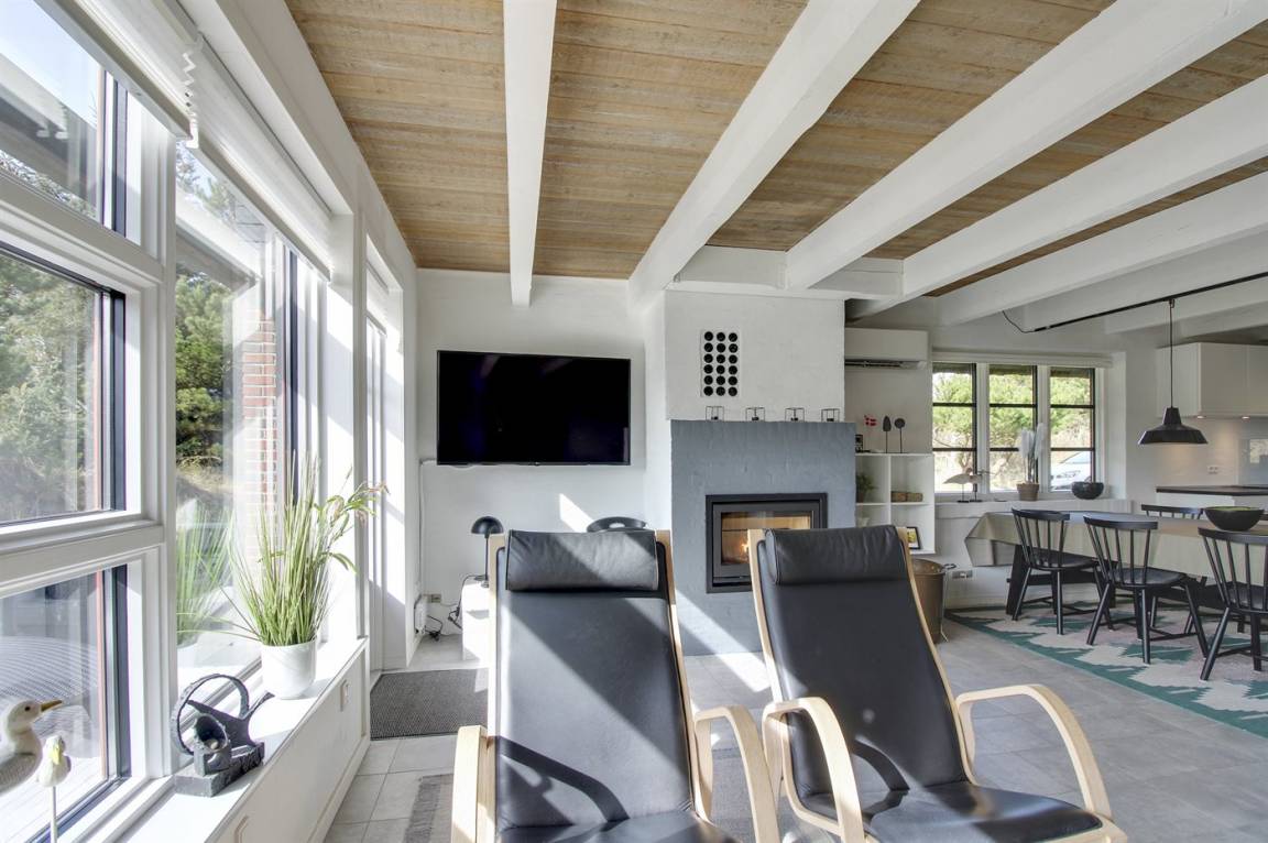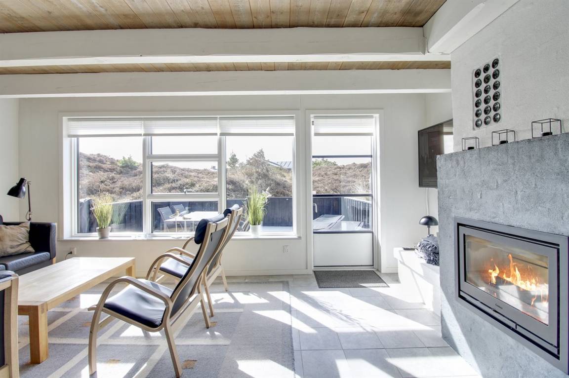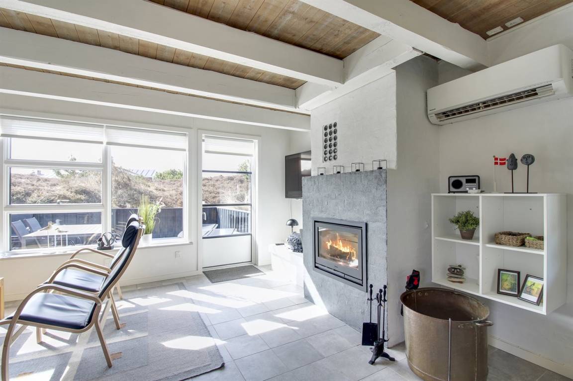Das Wohnzimmer, mit Fliesenboden und losen Teppichen, ist mit bequemen Möbeln ausgestattet. Im Wohnzimmer gibt es einen neuen und umweltfreundlichen Kamineinsatz sowie eine energiesparende Wärmepumpe. Außerdem stehen Fernseher mit dänischen sowie einigen deutschen Fernsehsendern sowie Internetradio zur Verfügung und es ist kostenlose Internetverbindung (200/200 Mbit) installiert.