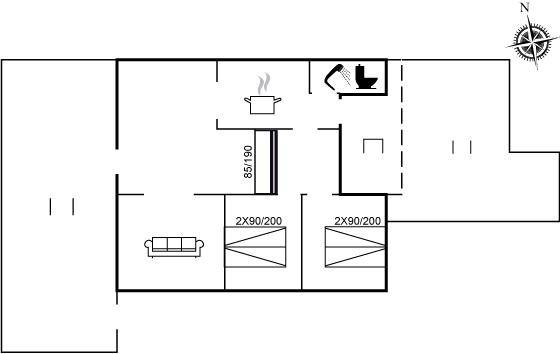 DraußenDie Ferienunterkunft liegt auf einem 743 m² großen Dünengrundstück. Die Entfernung zum Meer beträgt 200 m. Die nächste Einkaufsmöglichkeit liegt 300 m entfernt. Es steht ein 55 m² Terrassenareal zur Verfügung. Außerdem gibt es 6 m² überdachte Terrasse. Davon insgesamt 2 m² geschlossene Terrasse. Parkplatz auf dem Grundstück.