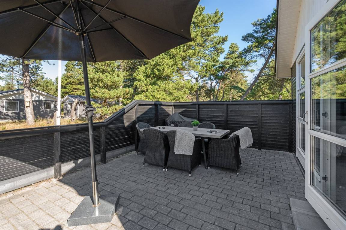 DraußenDie Ferienunterkunft liegt auf einem 1500 m² großen Naturgrundstück. Die Entfernung zum Meer beträgt 2000 m. Die nächste Einkaufsmöglichkeit liegt 300 m entfernt. Es steht ein 104 m² Terrassenareal zur Verfügung. Schaukel. Sandkasten. Parkplatz auf dem Grundstück.
