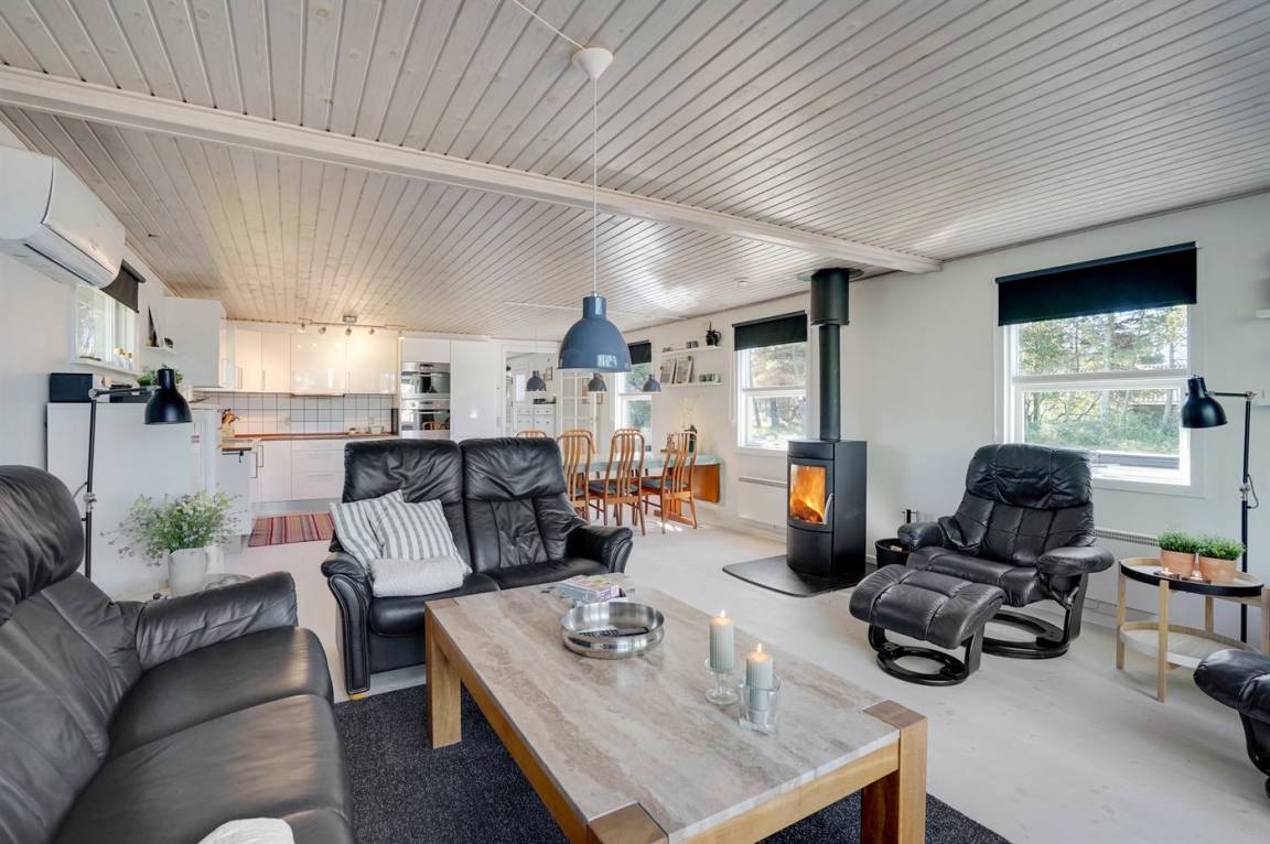 Das Ferienhaus eignet sich für 6 Personen sowie 1 Kleinkind bis zu 3 Jahren. Die Ferienunterkunft hat eine Wohnfläche von 110 m² und wurde 1972 gebaut. 2008 wurde die Ferienunterkunft teilweise renoviert. Haustiere dürfen nicht mitgebracht werden. Die Ferienunterkunft ist mit energiesparender Wärmepumpe ausgestattet. Die Ferienunterkunft ist mit Waschmaschine ausgestattet. Wäschetrockner. Tiefkühlmöglichkeit mit 93 Liter Nutzinhalt. Es gibt außerdem einen Kaminofen. Für die jüngsten Feriengäste ist 1 Kinderhochstuhl vorhanden.