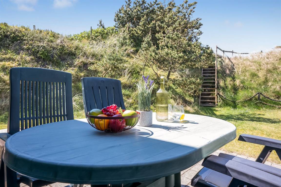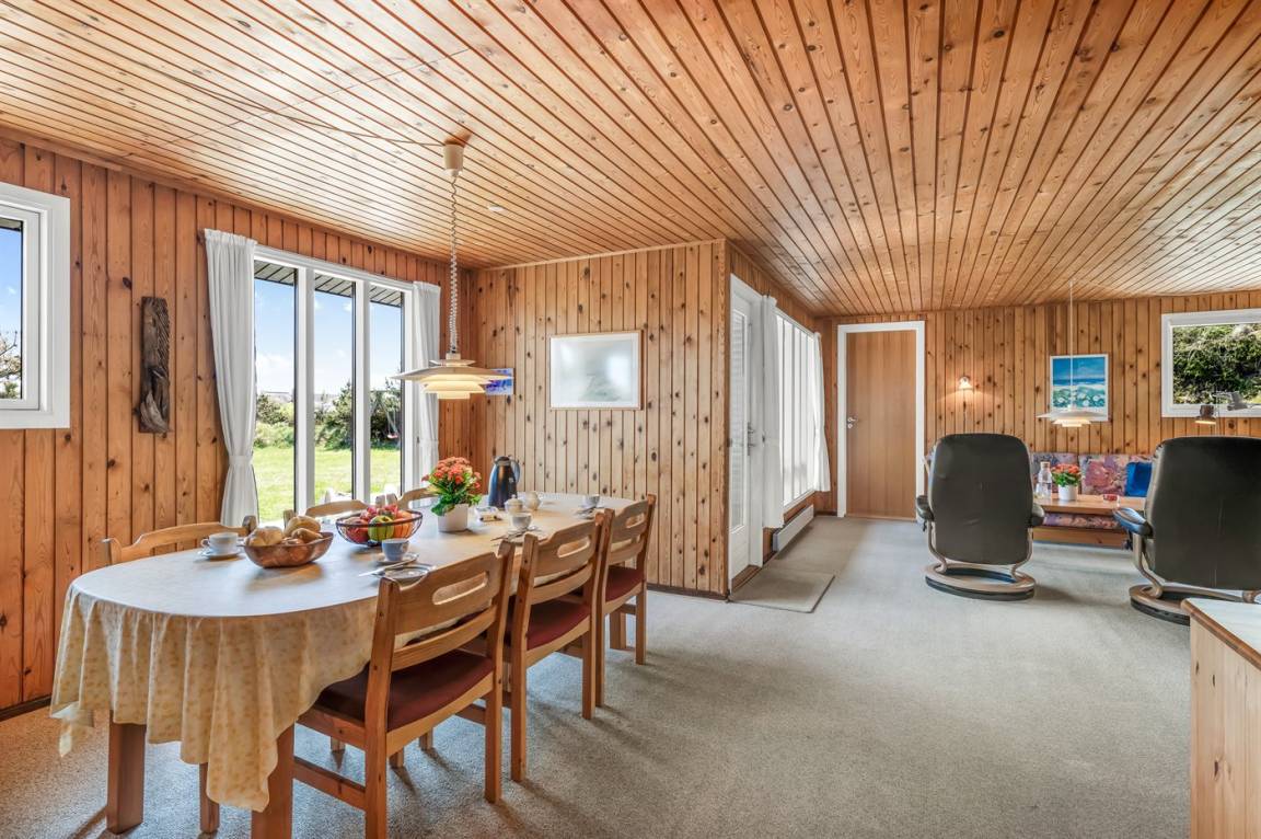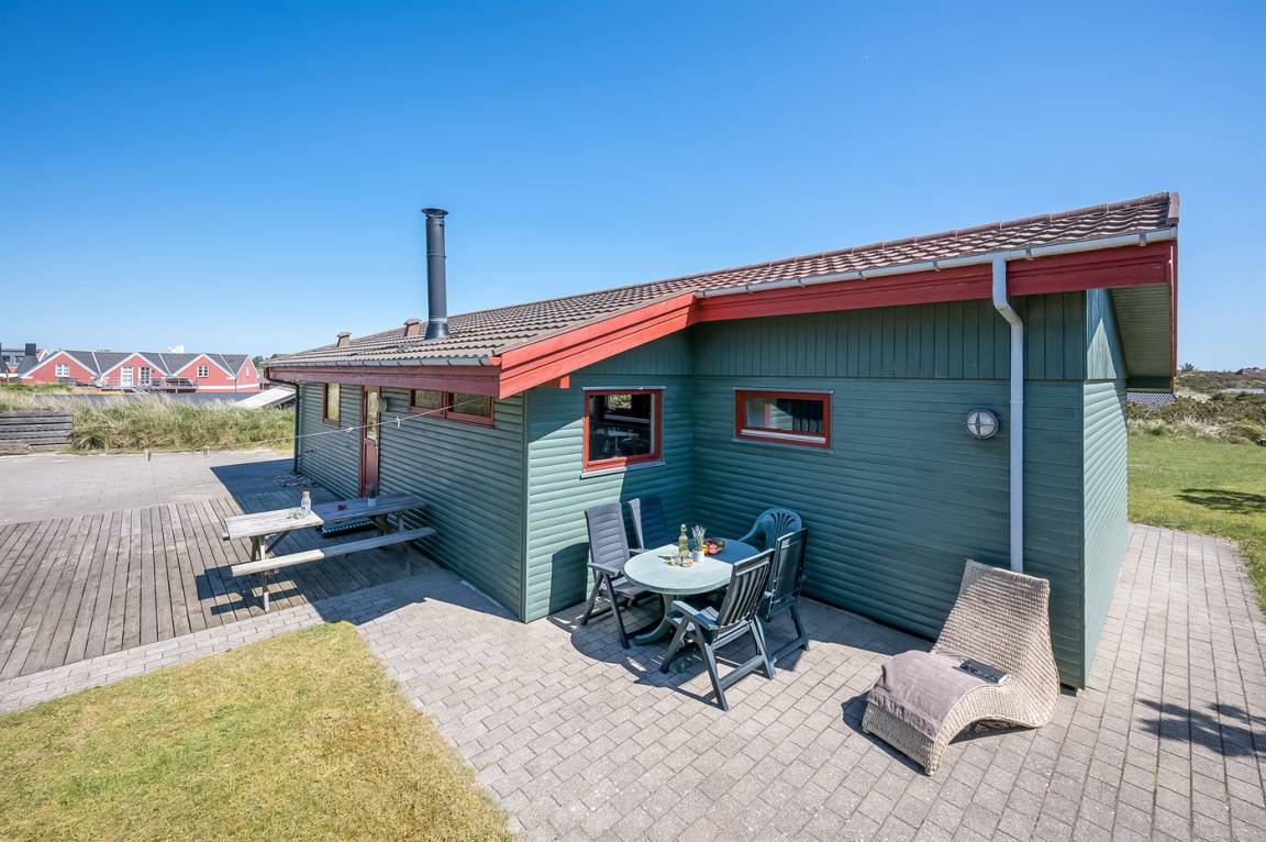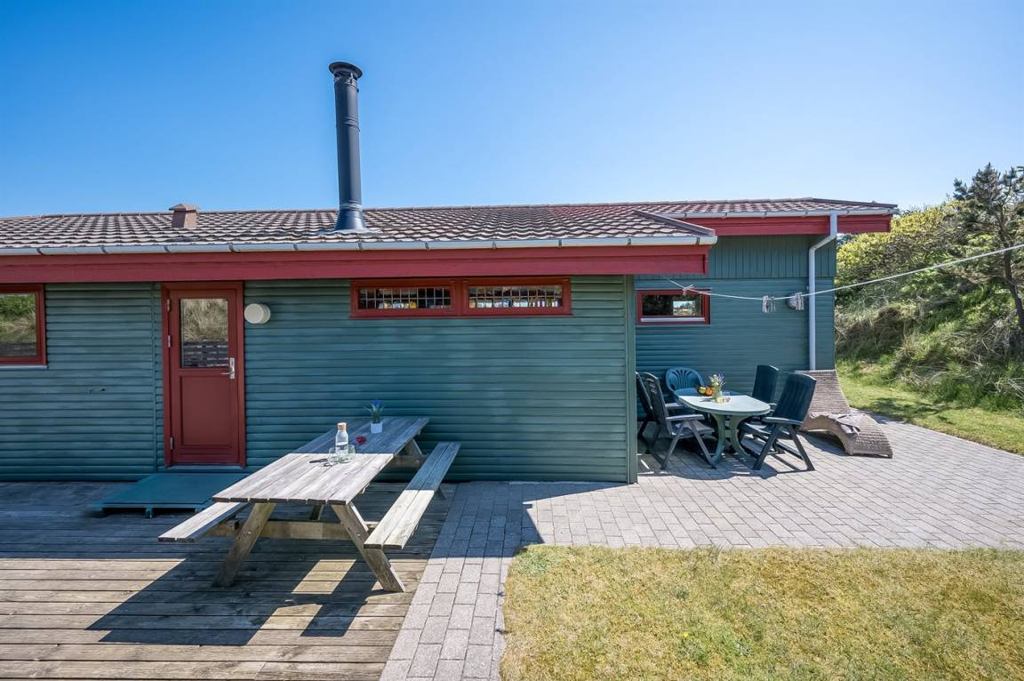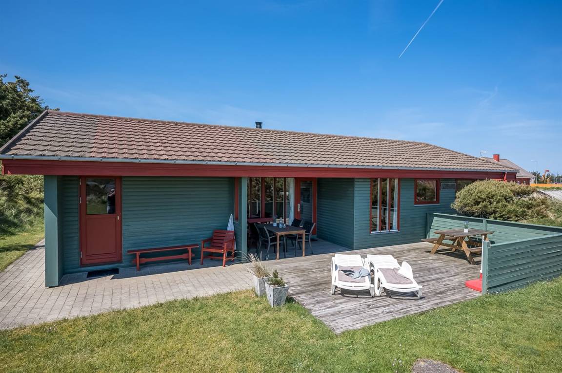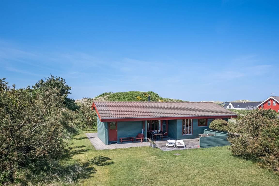 SchönesFerienhaus auf einem großen abgelegenen Naturgrundstück mit Panoramablick auf die Umgebung. Sehr kinderfreundliche Dünenlandschaft am Ende einer Sackgasse mit Schaukel und Sandkasten. Von der Dünenspitze überblickt man die Nordsee. Das Haus ist für bis zu 6 Personen geeignet. Das Ferienhaus ist 85 m² groß und wurde 1974 gebaut. Das Haus wurde 2009 erweitert. Haustiere sind nicht erlaubt. Das Ferienhaus verfügt über eine Waschmaschine. Es gibt auch einen Holzofen. Das Ferienhaus liegt auf einem 2700 m² großen Naturgrundstück. Es ist 250 m zum Meer. Das nächste Geschäft befindet sich in einer Entfernung von 100 m. Zum Ferienhaus gehört eine 85 m² große offene Terrasse. Darüber hinaus gibt es eine 11 m² große überdachte Terrasse. Schaukel. Sandkasten. Grill verfügbar. Es ist ein Carport vorhanden. Parkplatz beim Ferienhaus. Es gibt insgesamt 3 Schlafzimmer. Die Schlafbereiche sind unterteilt in: 2 Schlafplätze in einem Doppelbett. Für 3 Personen in Einzelbetten. 1 Schlafplatz im Etagenbett. Die Küche ist mit 1 Kühlschrank und einem Gefrierfach mit einem Fassungsvermögen von 54 Litern ausgestattet. Es gibt 4 elektrische Kochplatten, Backofen, Mikrowelle und Geschirrspüler. Es gibt 1 Badezimmer mit Dusche und 1 WC. Es gibt Fußbodenheizung im Badezimmer. Im Ferienhaus befindet sich 1 TV. DVD Spieler. Radio. Stereo. Es gibt mindestens 4 dänische Kanäle. Mindestens 4 deutsche Kanäle. Es gibt WLAN und Satellitenempfang.