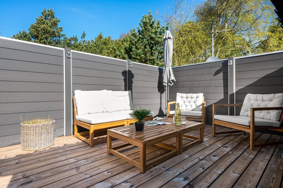 DraußenDie Ferienunterkunft liegt auf einem 1759 m² großen Naturgrundstück. Die Entfernung zum Meer beträgt 1500 m. Die nächste Einkaufsmöglichkeit liegt 500 m entfernt. Es steht ein 48 m² Terrassenareal zur Verfügung. Schaukel. Windschutzhütte. Es steht ein Grill zur Verfügung. Parkplatz auf dem Grundstück.