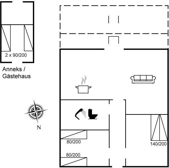 SchlafverhältnisseDie Schlafplätze verteilen sich auf 3 Schlafräume. 2 Schlafplätze in einem Doppelbett. 4 Schlafplätze in Einzelbetten. 2 von diesen Schlafplätzen befinden sich im Gästehaus.