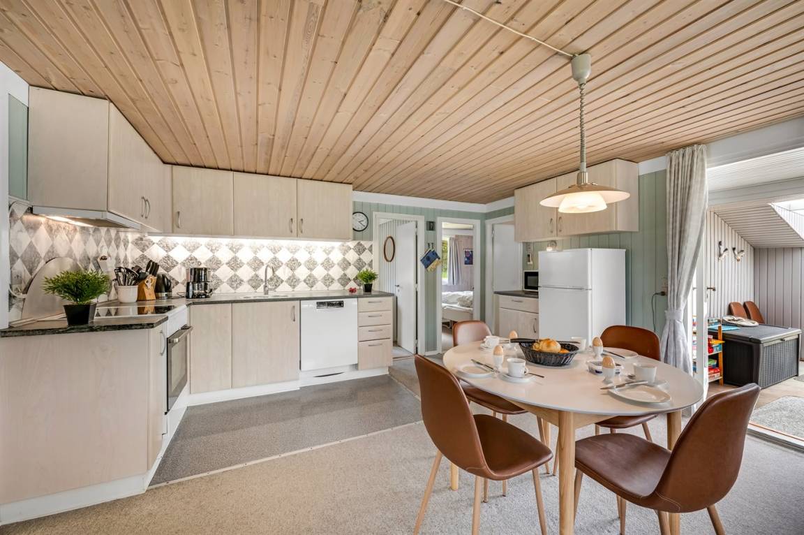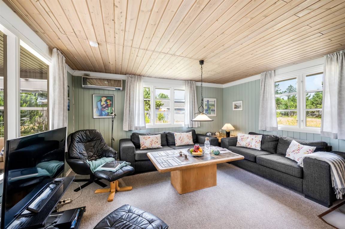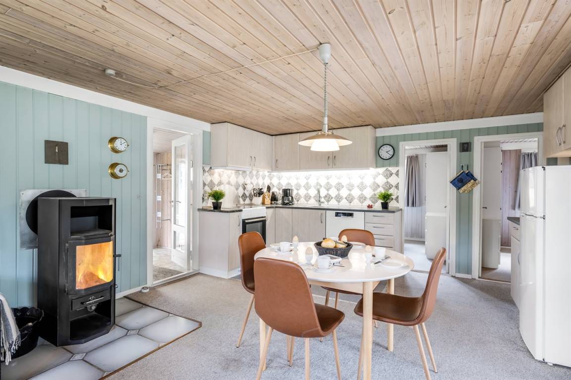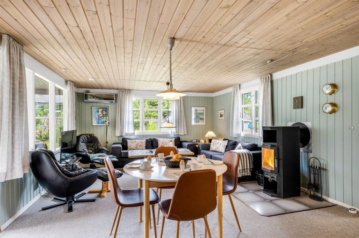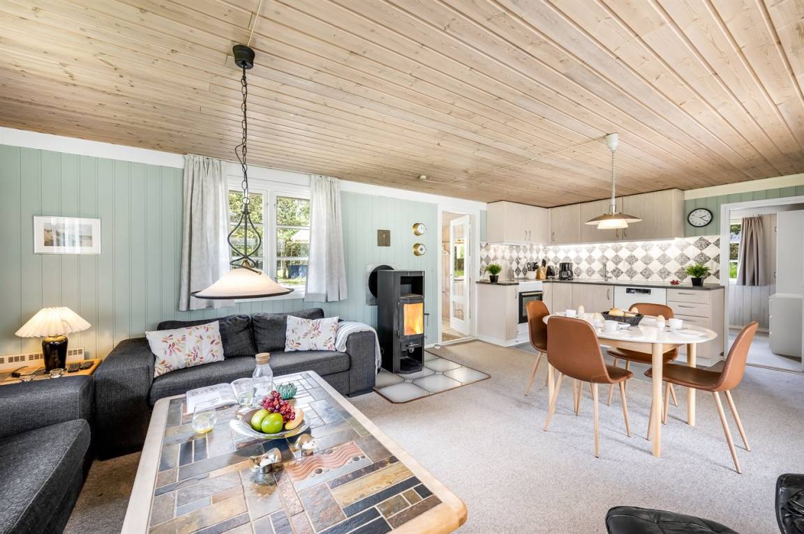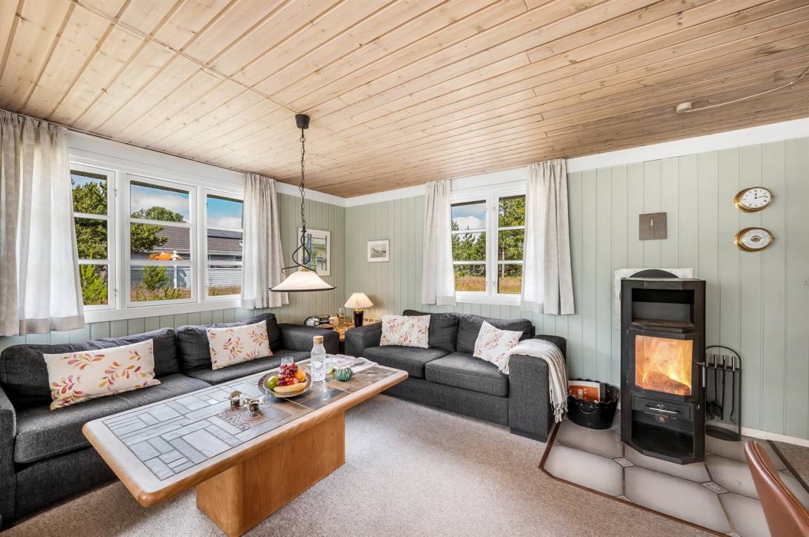 Dieses gemütliche Ferienhaus bietet Euch den perfekten Rahmen für einen erholsamen Familienurlaub.Die Einrichtung ist warm und heimelig mit komfortablen Möbeln, auf denen sich die ganze Familie nach einem Tag am Strand oder im Wald entspannen kann. An kühlen Tagen sammelt man sich ganz natürlich um den knisternden Kaminofen, der sowohl Wärme als auch zusätzliche Urlaubsstimmung spendet.