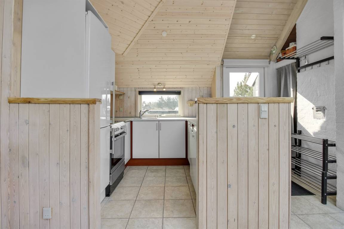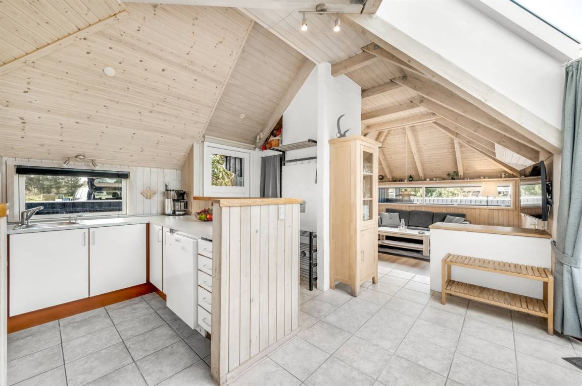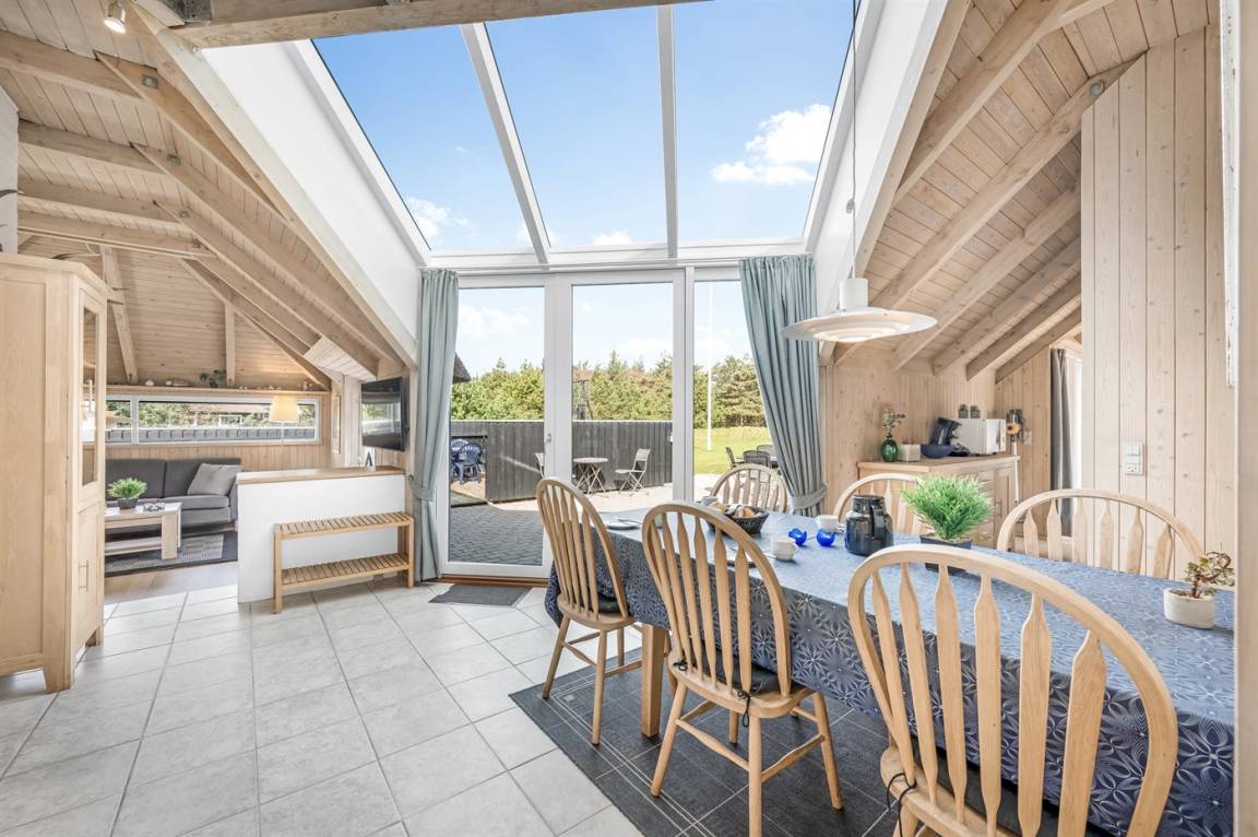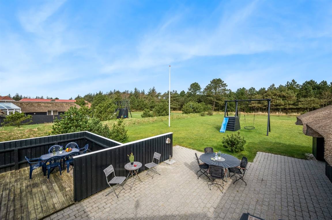 Ein schönes und hell eingerichtetes Ferienhaus mit einer guten Lage in Vejers. Das Haus liegt auf einem sehr großen Grundstück mit Platz für Ballspiele und andere Aktivitäten im Freien. Es steht eine schöne Terrasse zur Verfügung.