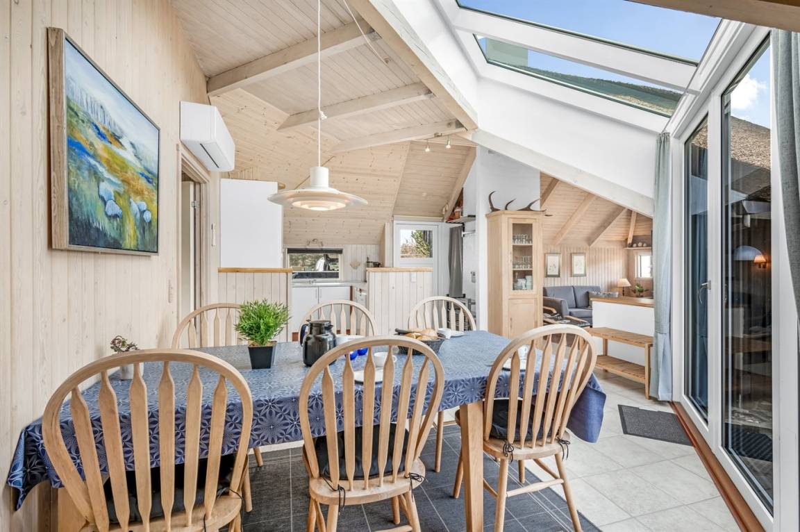 Das Ferienhaus eignet sich für 6 Personen sowie 1 Kleinkind bis zu 3 Jahren. Die Ferienunterkunft hat eine Wohnfläche von 96 m² und wurde 1988 gebaut. 2015 wurde die Ferienunterkunft renoviert. Es ist erlaubt 1 Haustier mitzubringen. Die Ferienunterkunft ist mit energiefreundlicher Luft-Luft- Wärmepumpe ausgestattet. Die Ferienunterkunft ist mit Waschmaschine ausgestattet. Wäschetrockner. Tiefkühlmöglichkeit mit 87 Liter Nutzinhalt. Es gibt außerdem einen Kaminofen. Für die jüngsten Feriengäste ist 1 Kinderhochstuhl vorhanden. Wickeltisch.