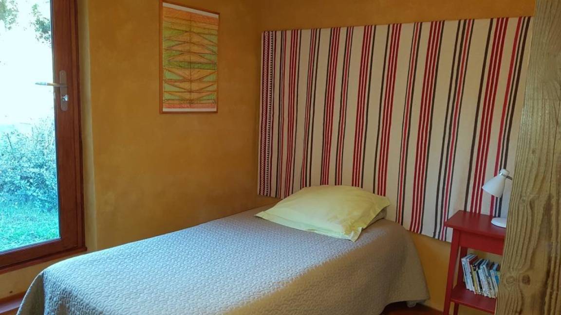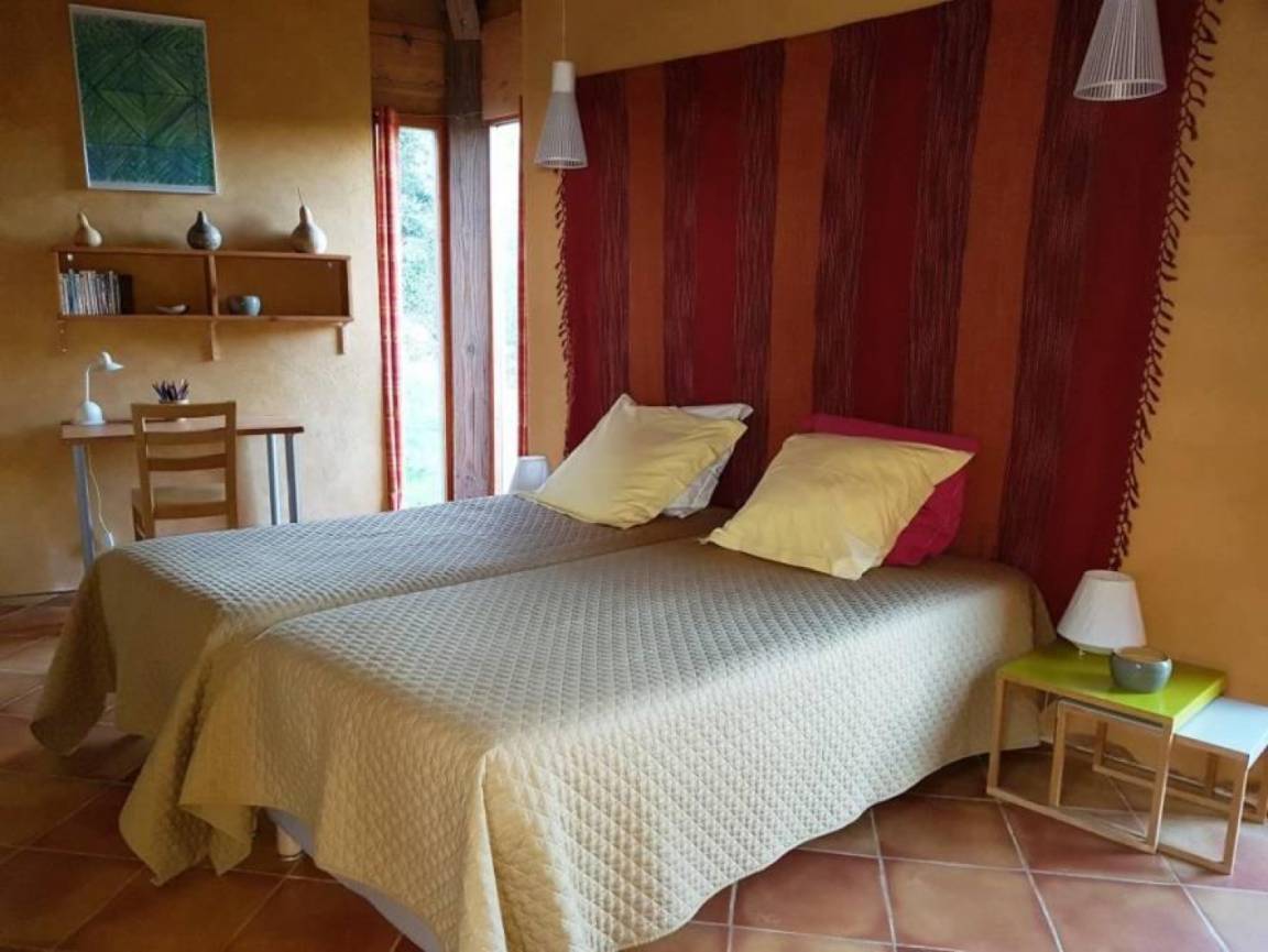 „Malgré un temps instable, nous avons beaucoup apprécié cet écogite pour son originalité, son confort, sa luminosité Très belle vue de la terrasse un environnement très naturel: Coq, poules, chattes nous visitent parfois Des propriétaires charmants qui nous ont invitées chez eux pour un apéro le lendemain soir de notre arrivée Des explications très intéressantes sur la création de cet écogite“