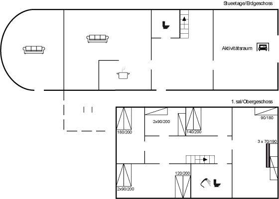 MultimedienIn der Ferienunterkunft gibt es einen Fernseher. DVD-Player. Stereoanlage. CD-Player. Mindestens 4 dänische Fernsehsender. Mindestens 4 deutsche Fernsehsender. Es steht kabellose Internetverbindung zur Verfügung.