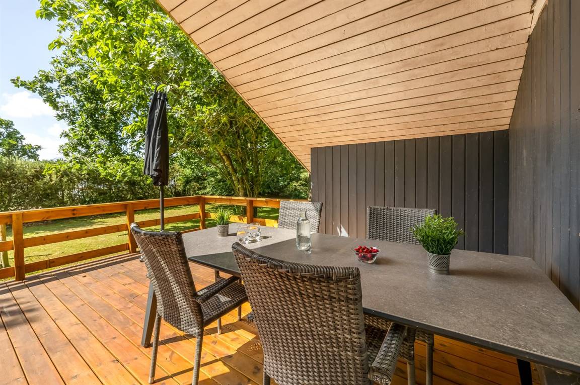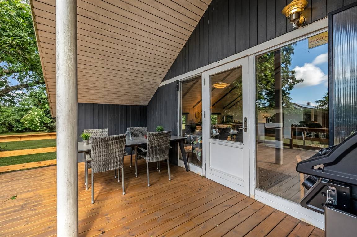 DraußenDie Ferienunterkunft liegt auf einem 1049 m² großen Naturgrundstück. Die Entfernung zum Fjord beträgt 500 m. Die nächste Einkaufsmöglichkeit liegt 9000 m entfernt. Es steht ein offenes Terrassenareal zur Verfügung. Außerdem gibt es überdachte Terrasse. Parkplatz auf dem Grundstück.