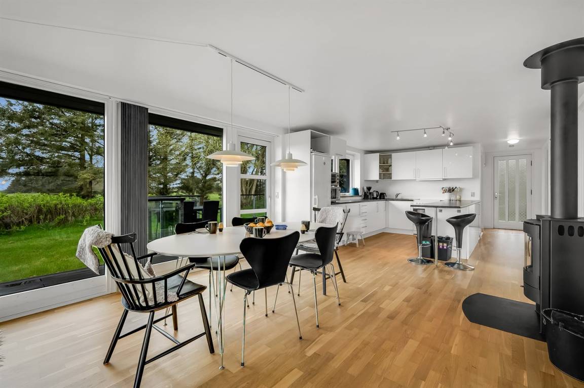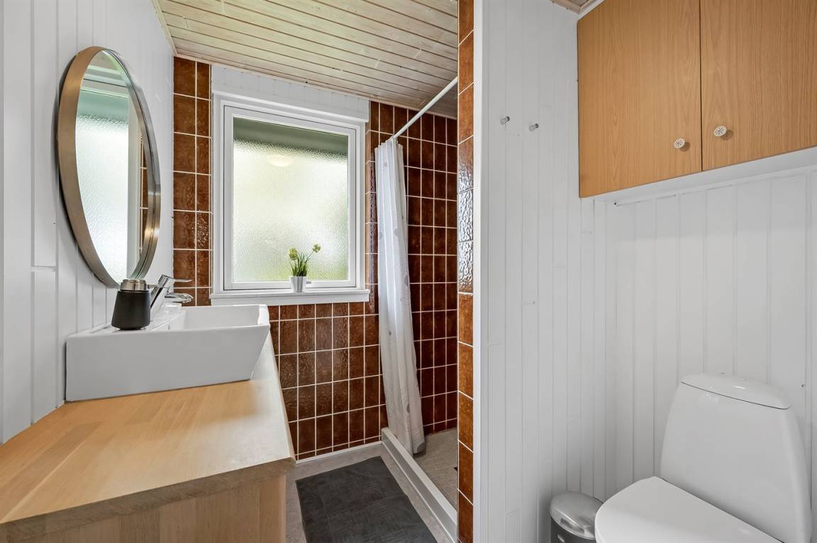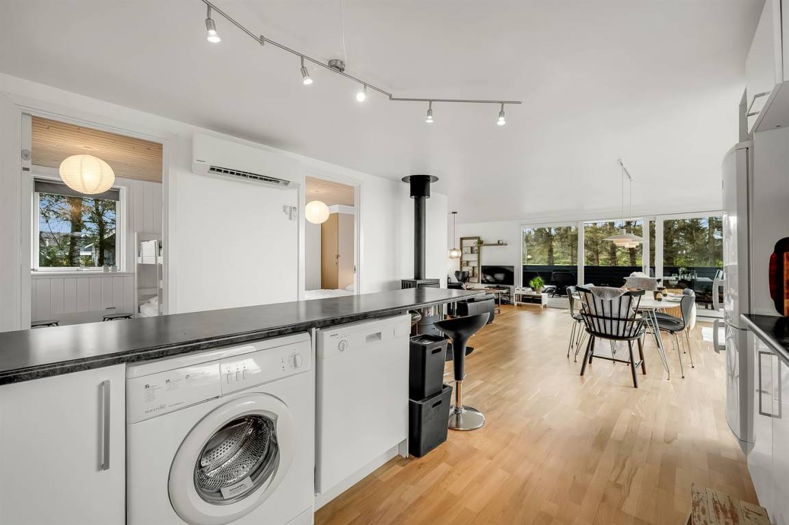 Sehr schönes und modernes Ferienhaus aus Stein, 1975 gebaut und 2013 letztens renoviert. Das Haus liegt auf einem Naturgrundstück in einem sehr ruhigen Ferienort. Sowohl vom Haus als auch von den Terrassen gibt es eine sehr hübsche Aussicht über den Fjord. Zum Haus gehören sowohl schönes, offenes als auch überdachtes Terrassenareal mit Gartenmöbeln. Innen gibt es weiß gestrichene Decken und Wände sowie teils Holzböden, teils Teppichböden. Badezimmer mit Duschnische. Die moderne eingerichtete Küche ist u. a. mit Geschirrspüler, Mikrowelle und Tiefkühlgerät ausgestattet. Schönes, großes und helles Wohnzimmer mit Kaminofen, Video, DVD-Spieler, TV mir digitalem Satellitenanschluss sowie Stereoanlage mit CD-Spieler. Die Schlafplätze verteilen sich auf 3 gute Schlafzimmer: 2 mit Doppelbett und 1 mit 2 Etagenbetten. Ferner sind Waschmaschine, Kinderbett sowie Kinderhchstuhl vorhanden und es ist eine energiesparende Wärmepumpe installiert. Das Ferienhaus liegt in einem sehr naturschönen und ruhigen Ferienort mit guten Bade-, Angel- und Surfmöglichkeiten.