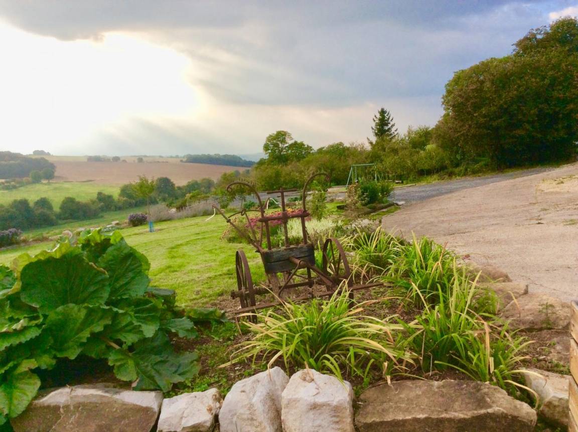 Großes, bewaldetes und blumenreiches Grundstück zur gemeinsamen Nutzung. Herrlicher Blick über die Felder. Privatparkplatz für mehrere Fahrzeuge. Überdachte Terrasse.