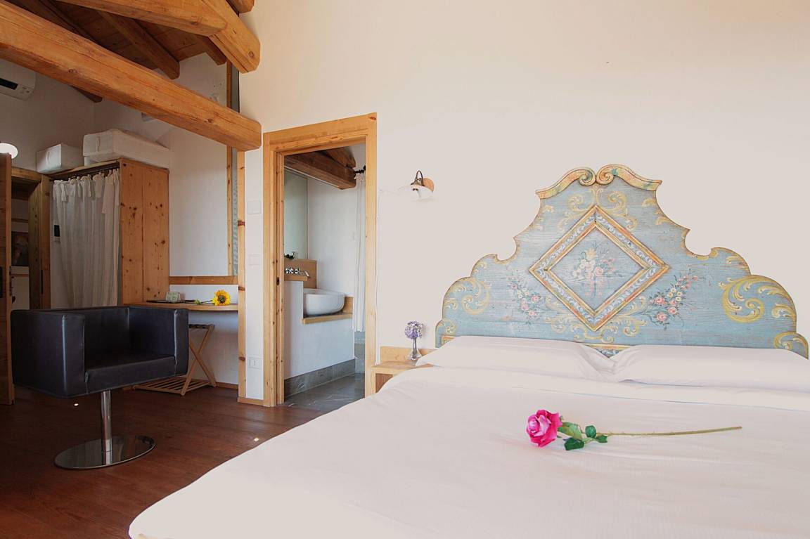 Schlafzimmer mit Bad 2: Doppelbett, WiFi Internet, Klimaanlage, TV, Waschbecken, WC, Bidet, Dusche.
