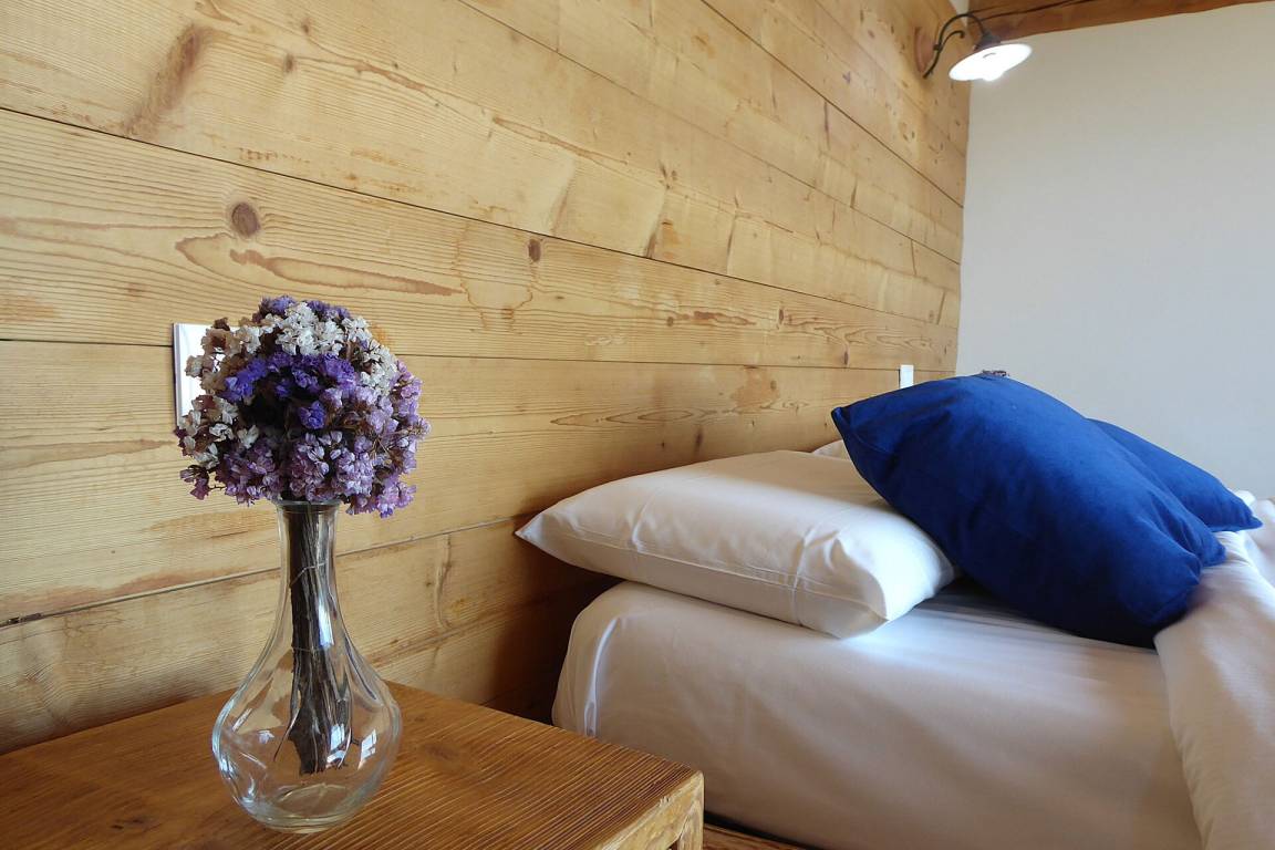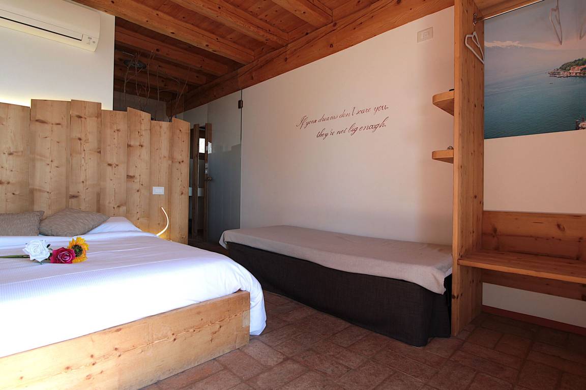 Schlafzimmer mit Bad 4: Doppelbett, Einzelbett, WiFi Internet, Klimaanlage, TV, Waschbecken, WC, Bidet, Dusche.