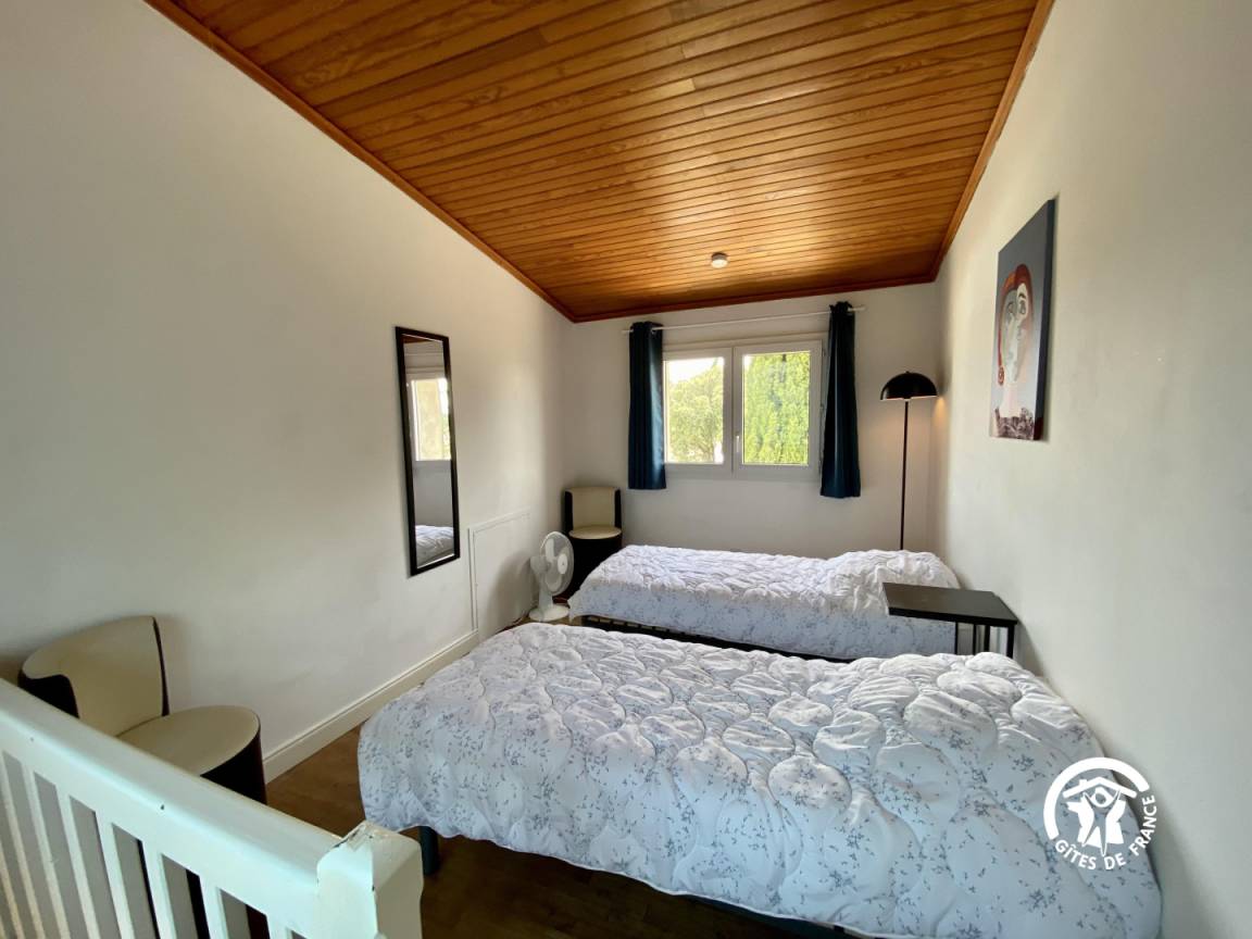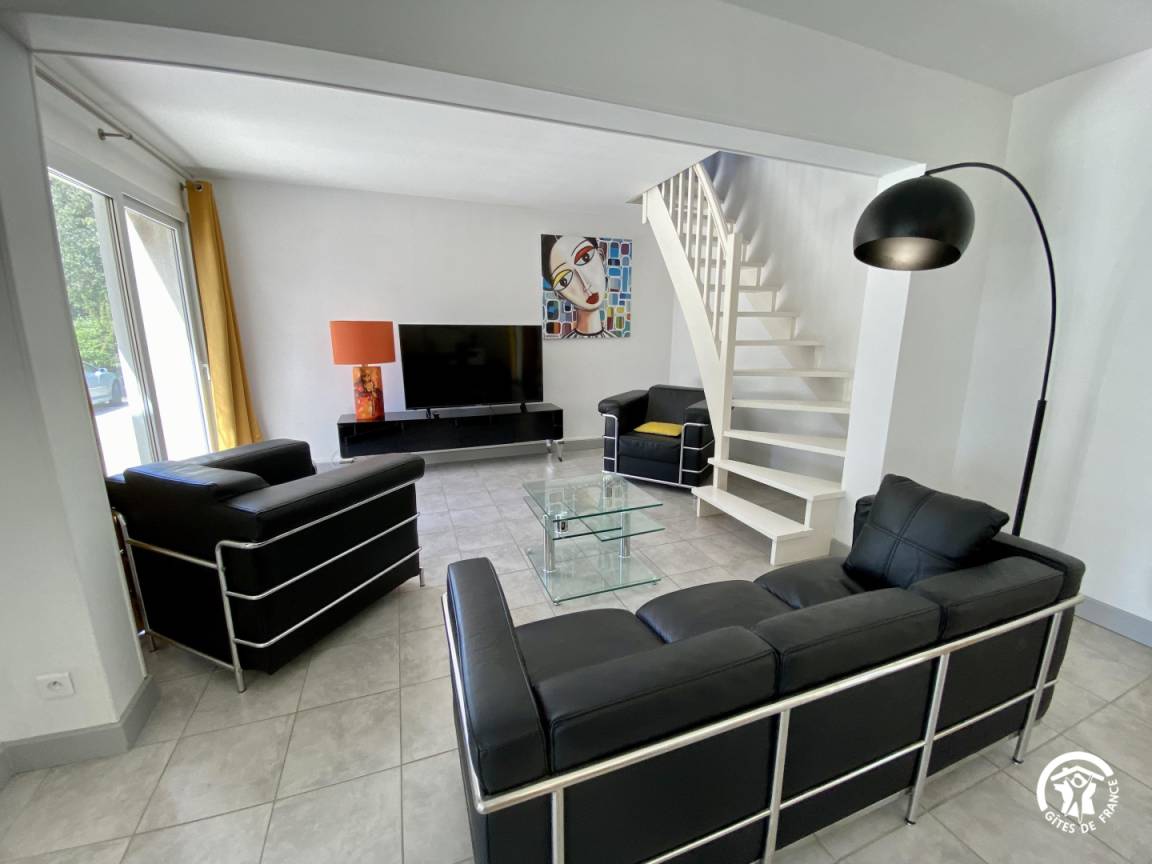 Die Gîte besteht im Erdgeschoss aus einem großen Wohnzimmer mit einer voll ausgestatteten Einbauküche, einem Wohnzimmer mit Sofas, Sesseln und Fernseher sowie einem Essbereich. Eine separate Toilette. Ein separates Badezimmer mit großer Dusche. Zwei Schlafzimmer mit jeweils einem 160cm Bett. Im oberen Zwischengeschoss befindet sich ein Schlafzimmer mit zwei 80 cm breiten Betten, die zusammengeschoben werden könne