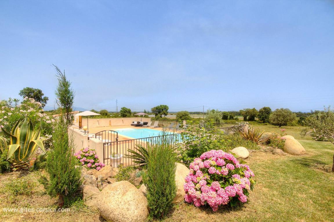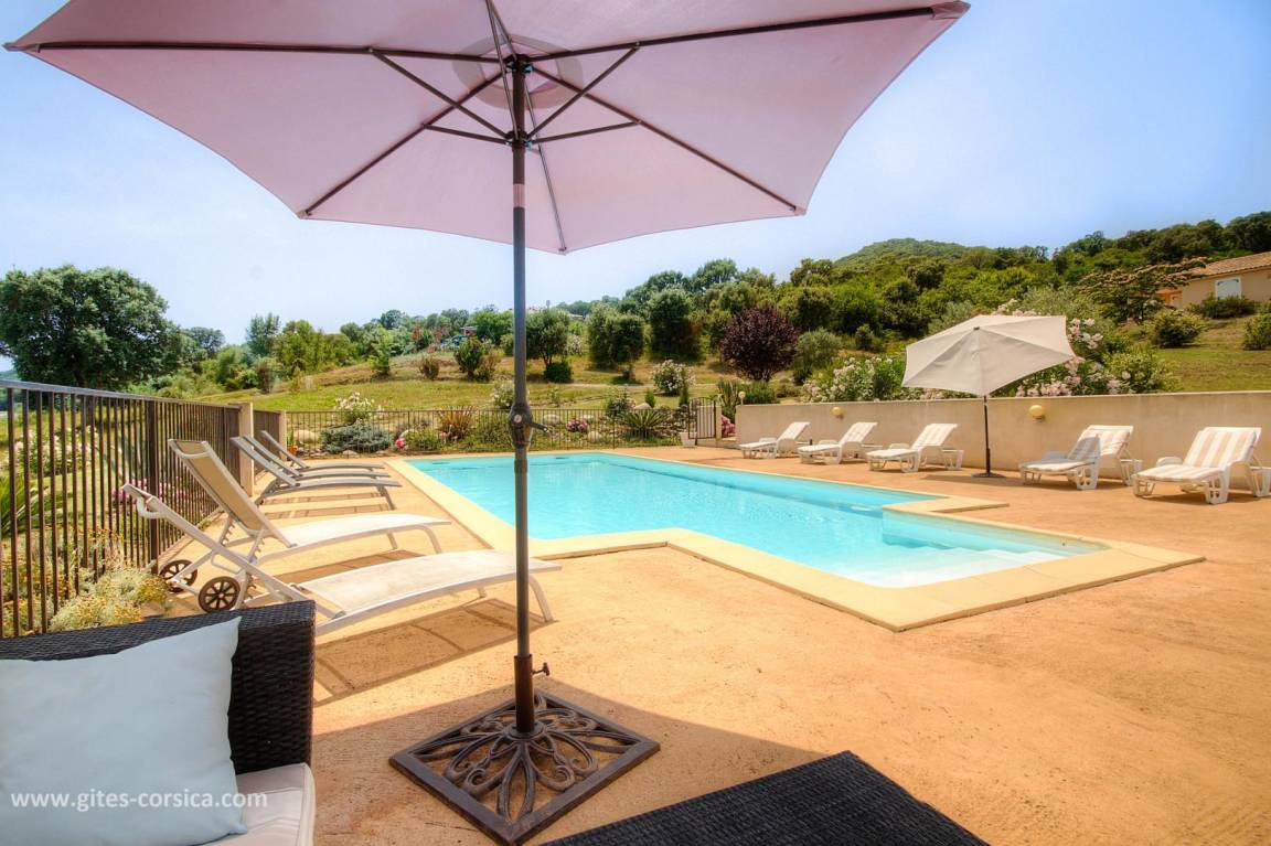 - Gemeinsamer Pool (10 x 5 m, 1,30 m tief) für die beiden anderen Ferienhäuser, geöffnet vom 20. Mai bis 30. September, gesichert durch eine Absperrung. Zutritt zum Pool haben nur die im Mietvertrag genannten Personen.