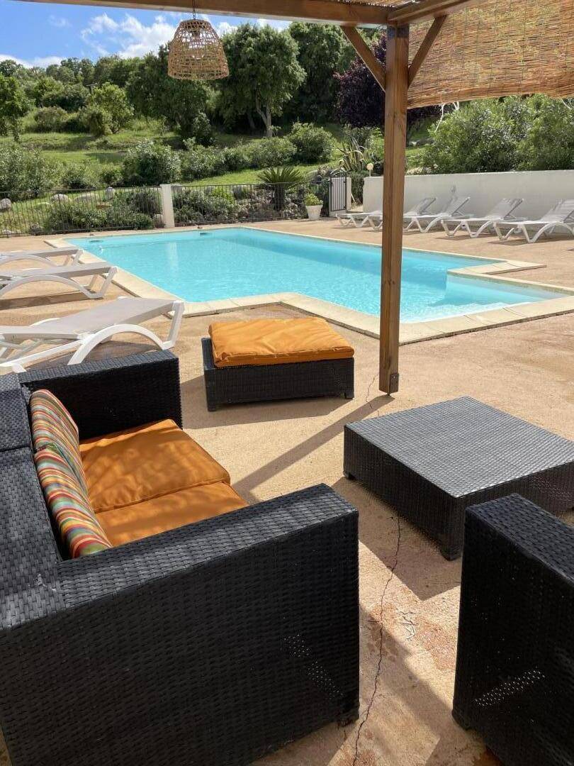 „Calme, propreté, confort, équipement, dépaysement avec la vue mer, tout était réuni pour que nous passions de bonnes vacances. Sans parler de la piscine, bien entretenue et bienvenue compte tenu de la chaleur...Propriétaire discrète mais présente en cas de besoin. Super !“
