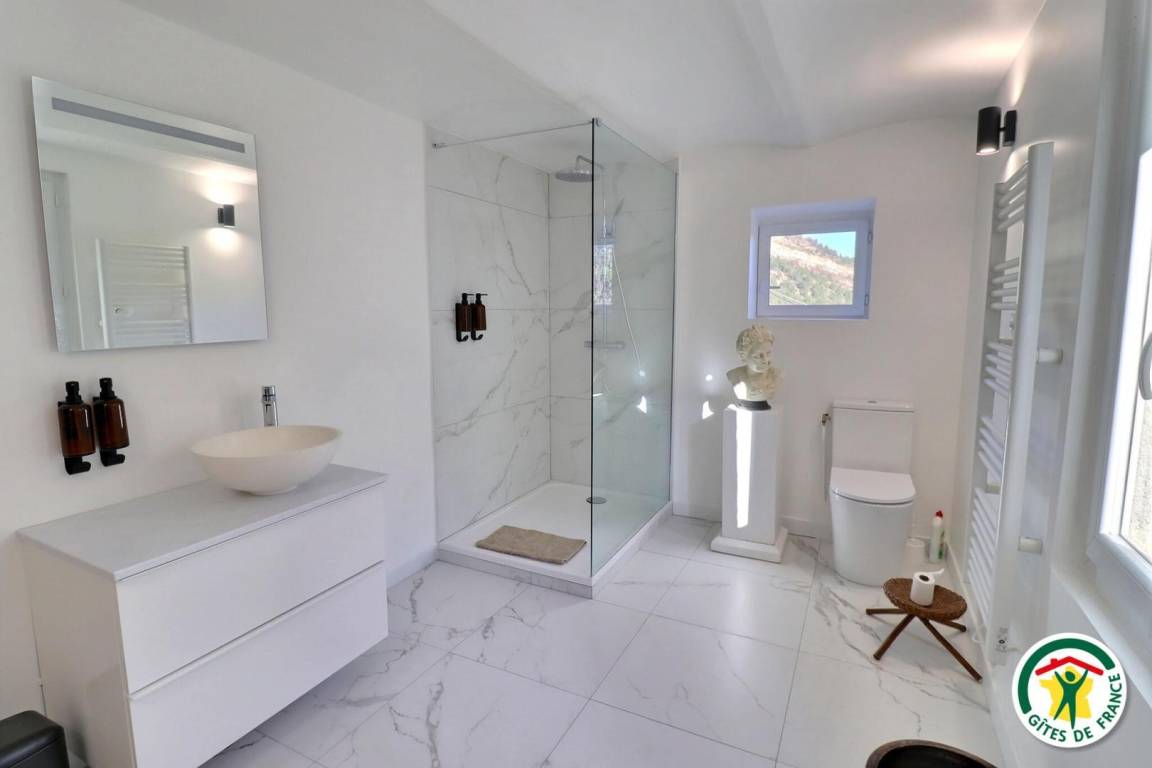 Entscheiden Sie sich für das Petit Mas du Boidana und entdecken Sie eine originelle Inneneinrichtung aus dekorativen Designerelementen im bezaubernden Flohmarktstil. Es wird Ihnen ein wahres Vergnügen sein, in einem Teil dieses von ihm komplett renovierten Hauses aus dem Jahr 1905 zu wohnen. Großzügig angelegt und gemütlich laden diese 50m² einfach zum Entspannen ein. Entspannen Sie sich am Godin-Holzofen, lassen Sie sich vom Vogelgezwitscher, der Aussicht, dem sanften Plätschern des Ubac und dem privaten Swimmingpool ablenken. Die Aufteilung ist wie folgt: Zugang über 8 Stufen, Wohnzimmer, Küche, Duschbad/WC, Schlafzimmer (160x200cm). Zur gemeinsamen Nutzung: Swimmingpool (10x4m, durchgehende Tiefe 1,50m, alarmgesichert), Waschküche. Aufgrund des nicht eingezäunten Grundstücks ist die Unterbringung von Tieren nur nach vorheriger Anfrage und Absprache möglich.
