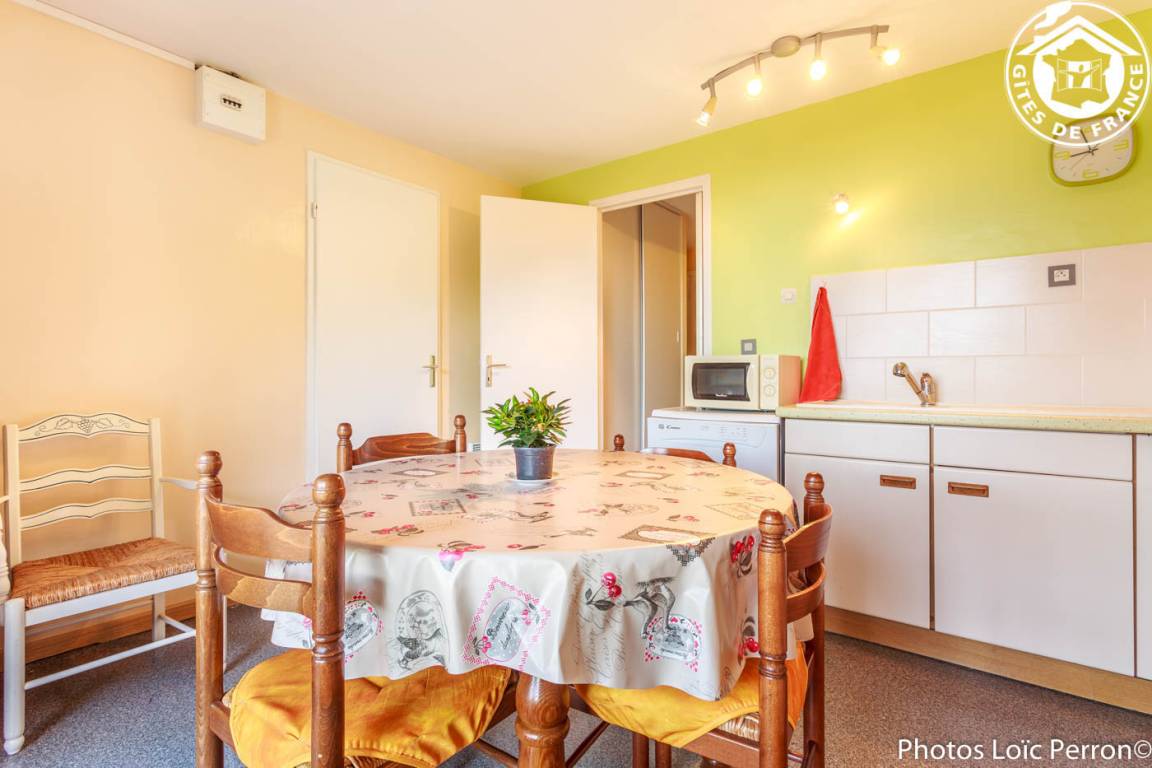 Gîte im Erdgeschoss des Hauses der Eigentümer. Küche, Wohnzimmer (BZ 2-Personen-Umbaubett 140x190 cm), 1 Schlafzimmer (1 Doppelbett 140x190 cm), Badezimmer (Dusche). Private Terrasse (40m²). Gericht + Gemeinsamkeit. Bettwäsche inklusive + gemachte Betten.