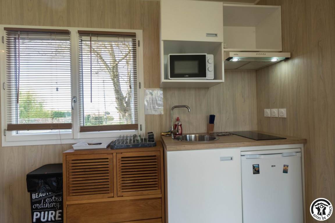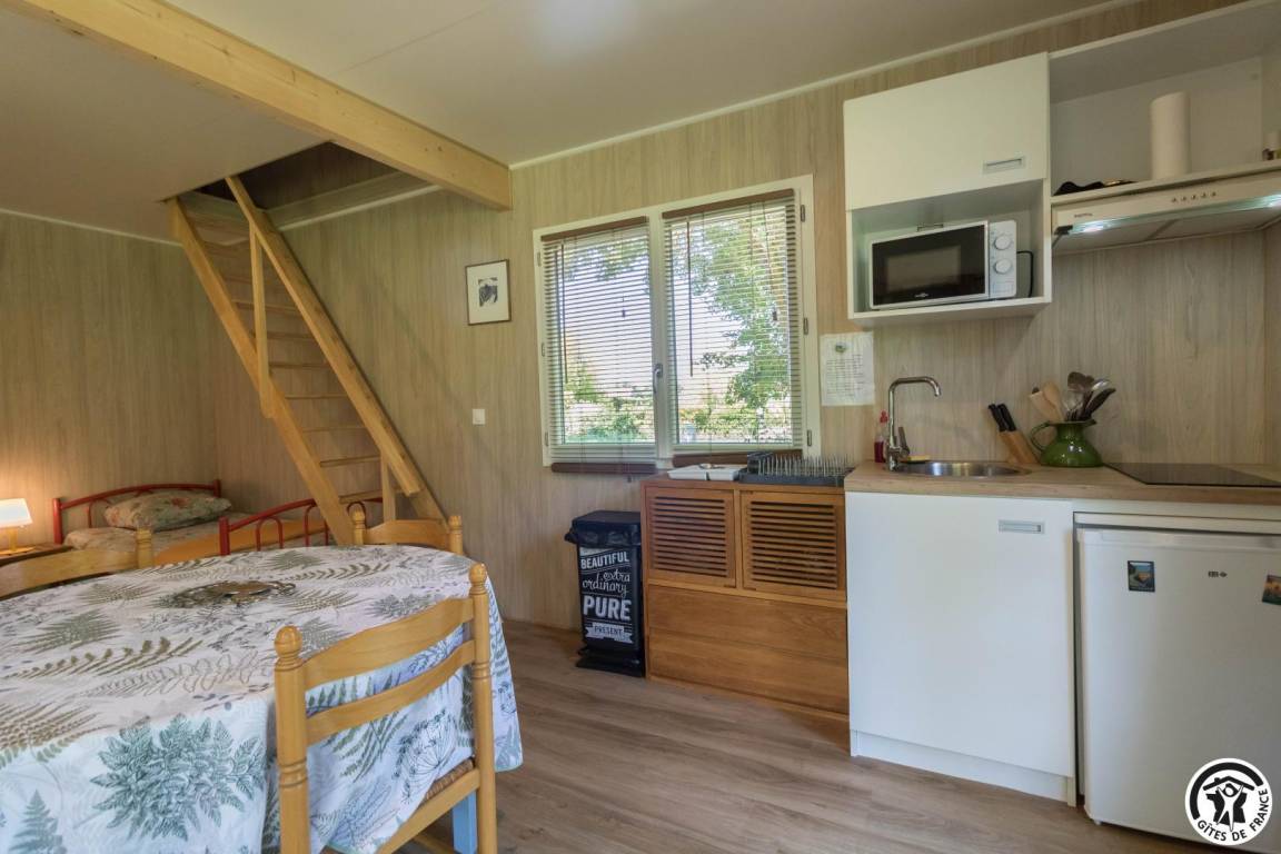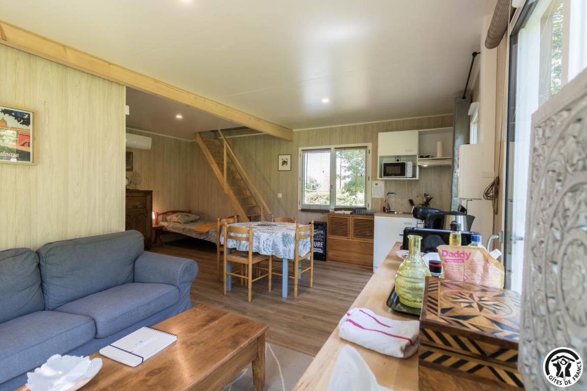 „Gite bien aménagé et confortable. Bonne literie. Pour une tiny housse la salle d'eau est spacieuse. Un séjour au vert où le chant des oiseaux remplace la télévision, un bon moyen pour déconnecter et se ressourcer.“
