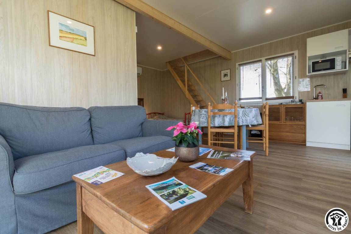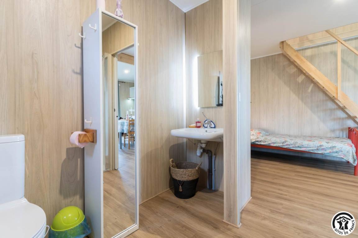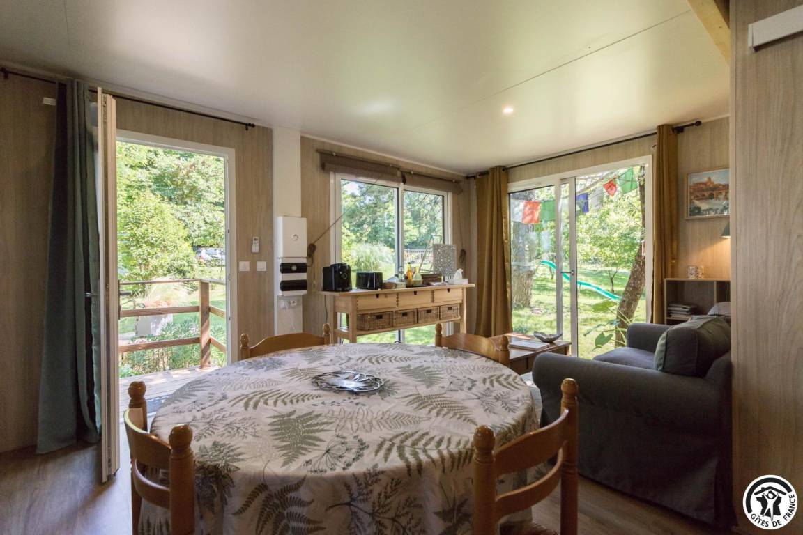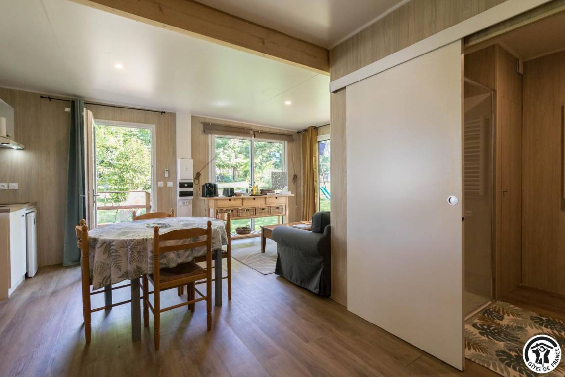 „Gite bien aménagé et confortable. Bonne literie. Pour une tiny housse la salle d'eau est spacieuse. Un séjour au vert où le chant des oiseaux remplace la télévision, un bon moyen pour déconnecter et se ressourcer.“