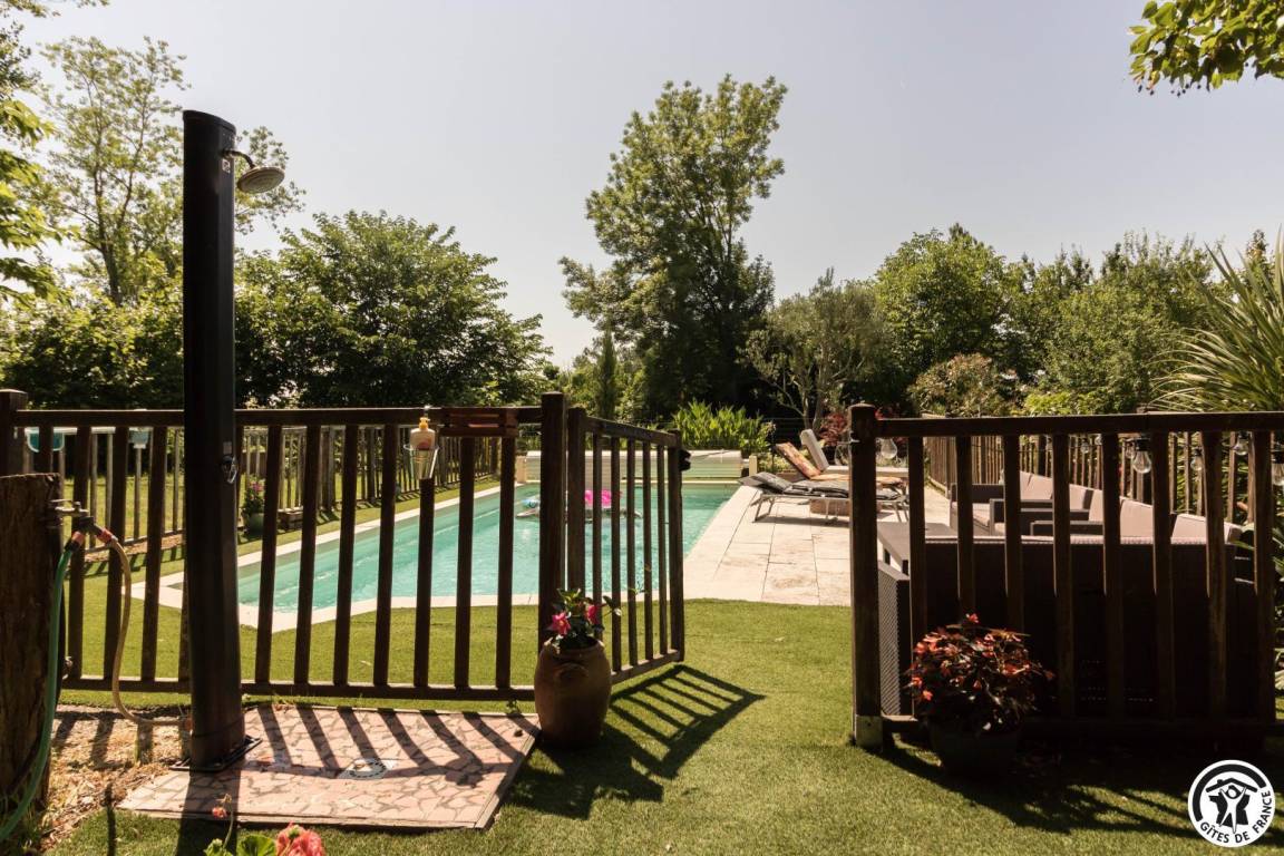 „Location insolite charmante et bien équipée. Climatisation fortement appréciée lors de cette semaine caniculaire, sans oublier la piscine ! Bien située géographiquement pour les visites, les villages, les commerces,....Hôtes fort sympathiques !“