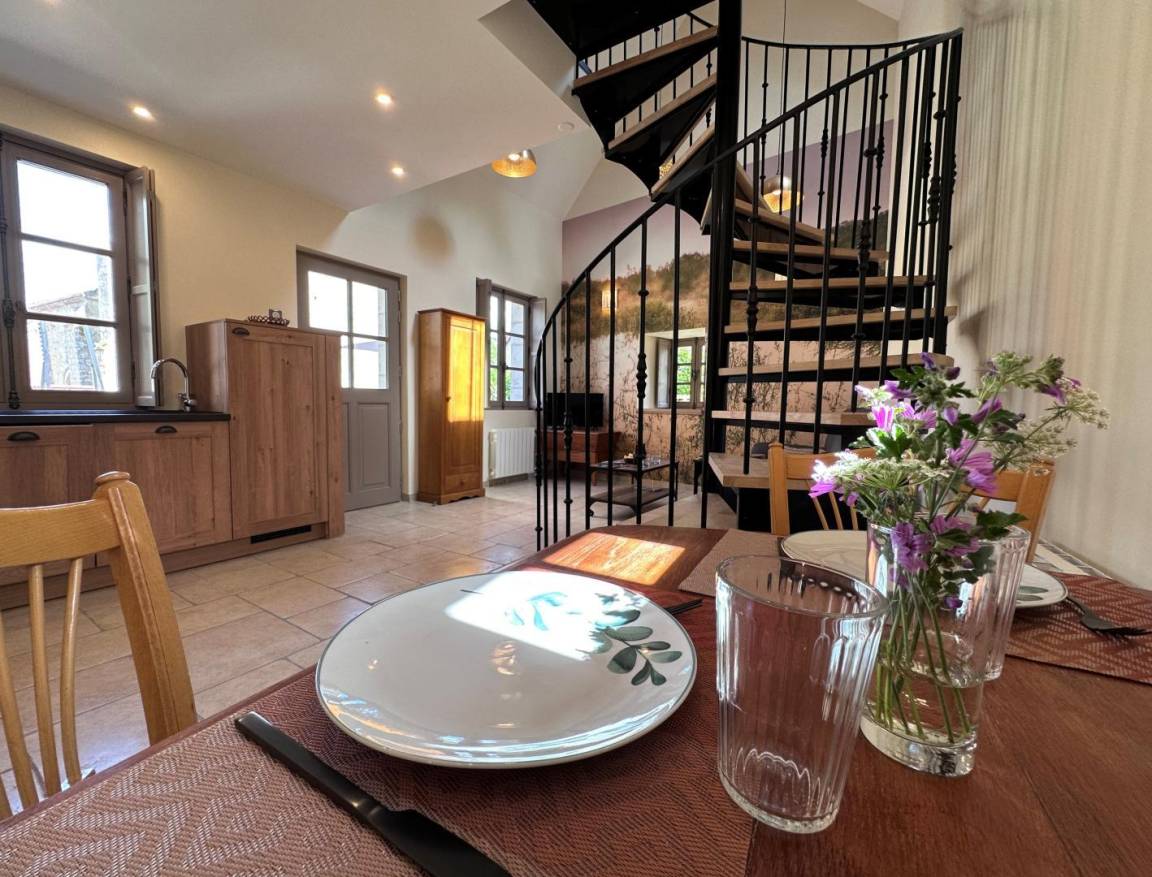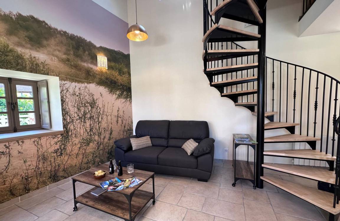 Über die Wendeltreppe erreichen Sie das Zwischengeschoss, das in ein Schlafzimmer für 2 Personen umgewandelt wurde.