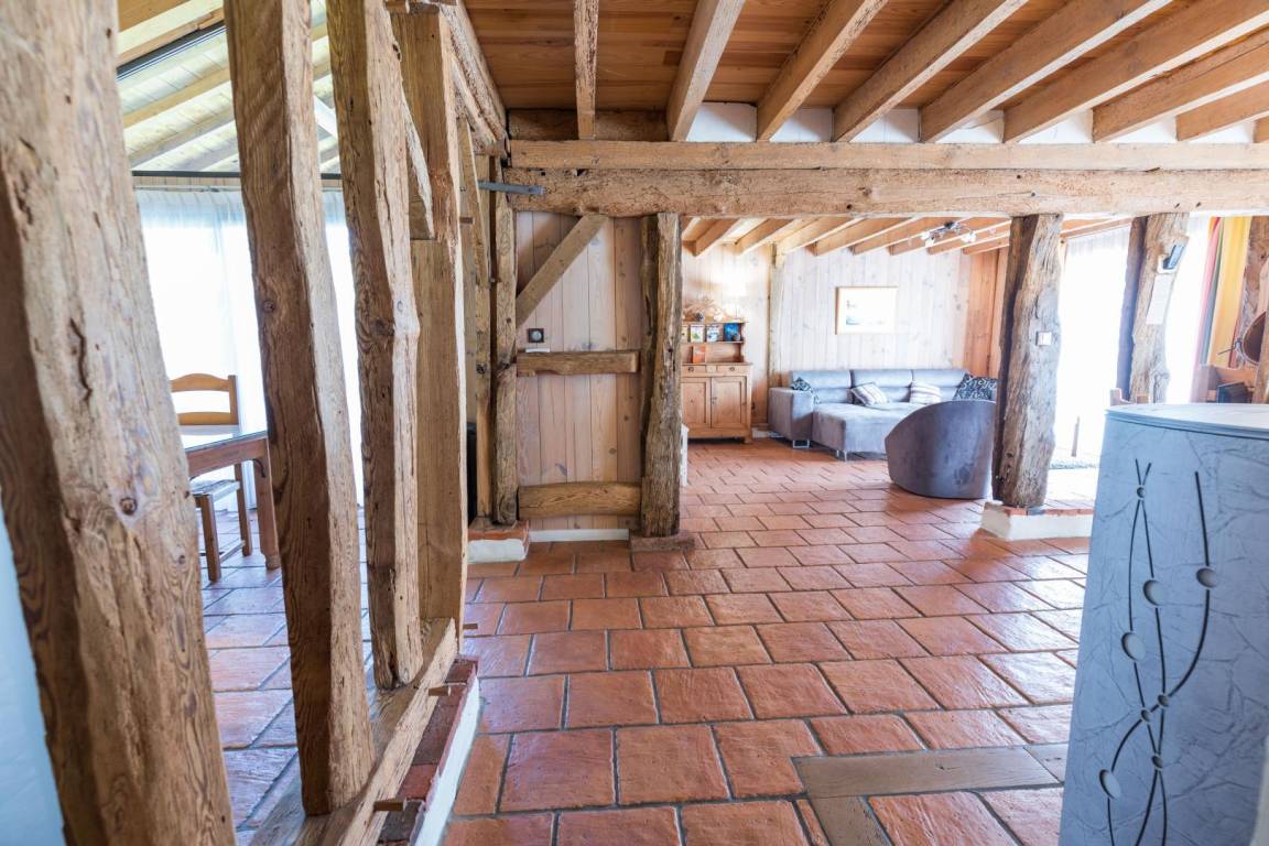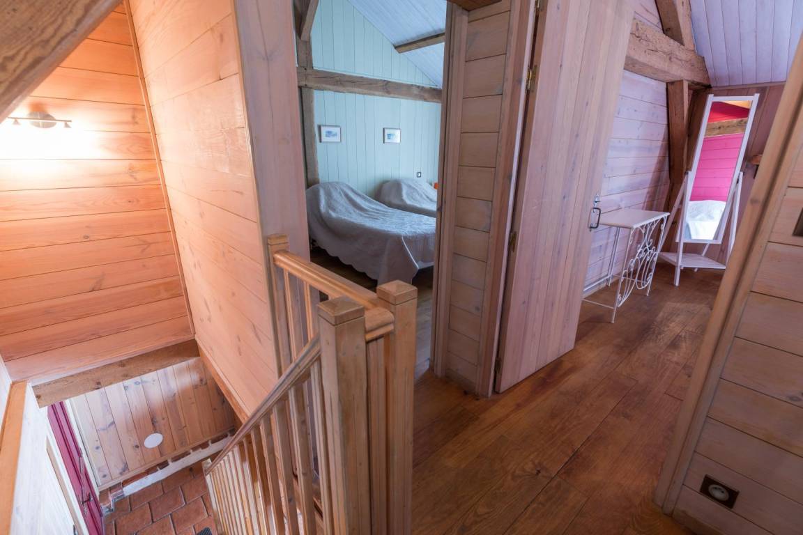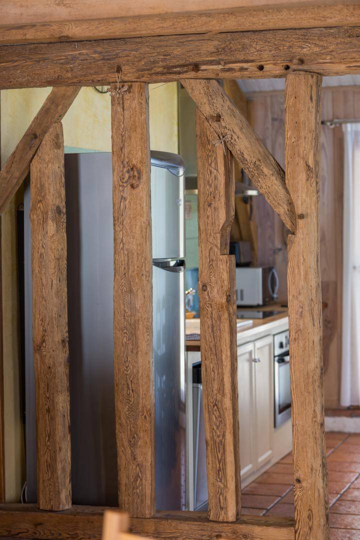 2008 hatten wir die Idee, unsere alte Scheune zu renovieren und zwei Öko-Lodges aus 100 % Seekiefer zu errichten. Wie Sie sehen, wurde bei der Umgestaltung dieses Gebäudes hauptsächlich Holz verwendet: Parkettböden, Täfelungen, Rahmen, Verkleidungen und vieles mehr!