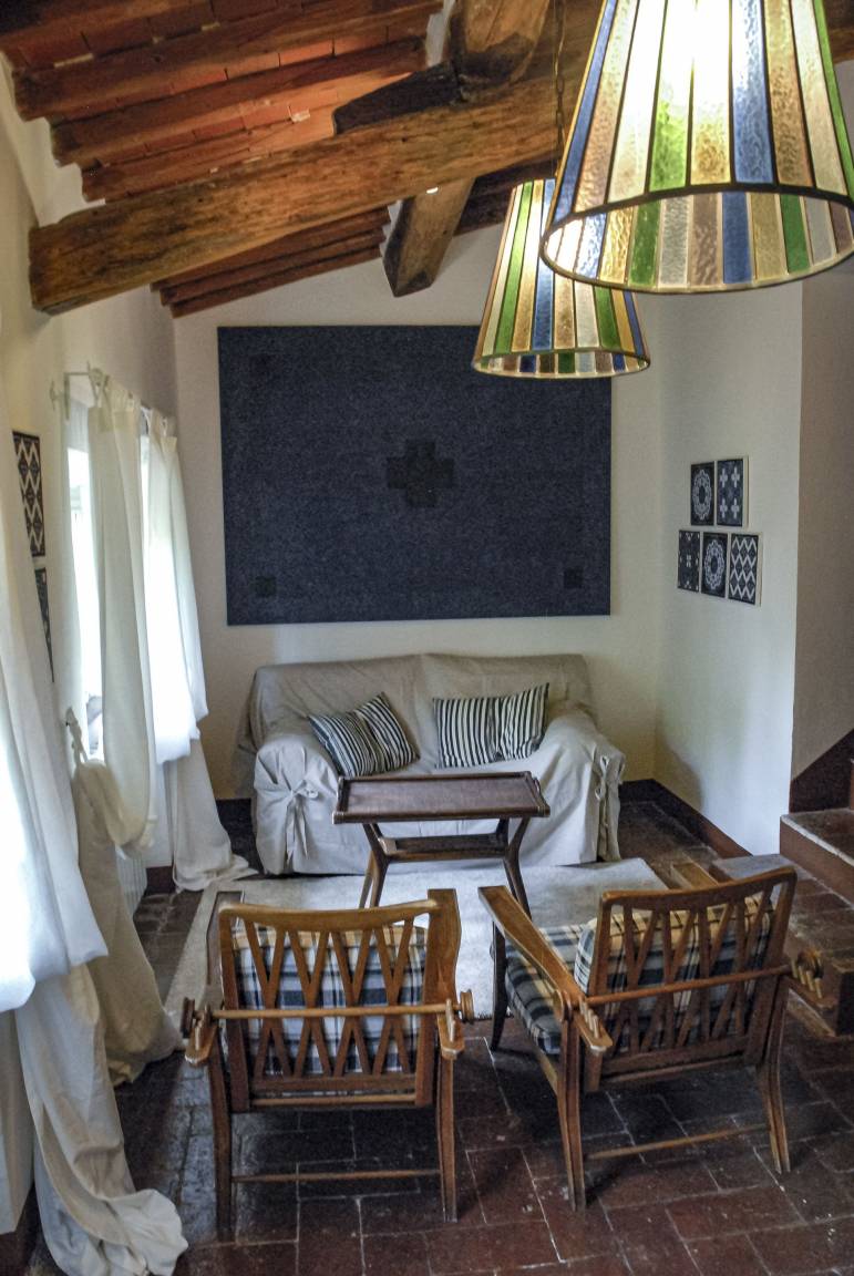 Solaio In Villa (100 m²) ist eine zwei-Zimmer Wohneinheit, die auf eins Etage gebaut ist, mit zwei Badezimmern. Hier können bis zu vier Leute schlafen.
