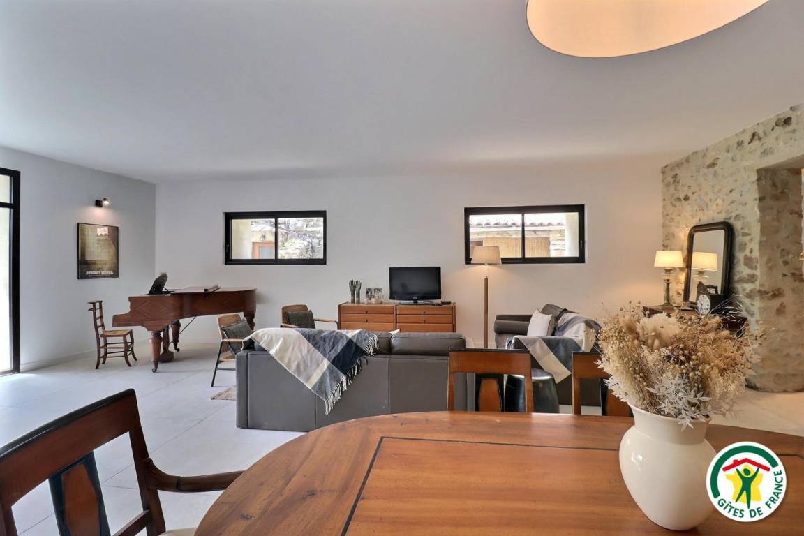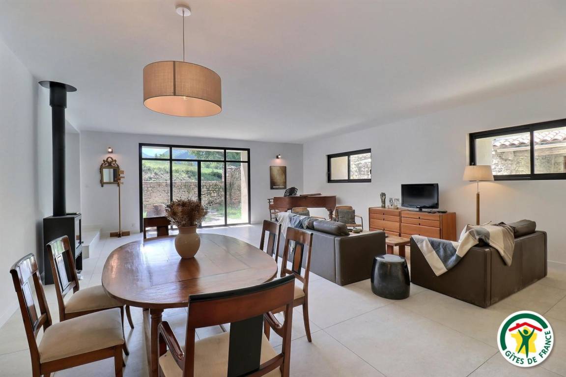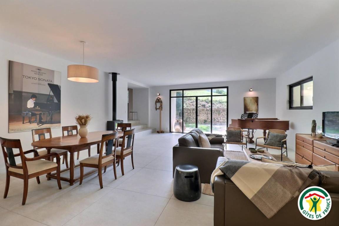 Das Haus von Nine ist wie folgt aufgeteilt: Im Erdgeschoss öffnet sich der Eingang zur Küche, das 60 m² große Wohnzimmer öffnet sich zur Terrasse, ein Flur (1 Stufe) führt zu 1 Schlafzimmer (140x190), 1 Badezimmer, 1 separates WC. Im 1. Stock, in 2 verschiedenen Teilen: auf der einen Seite (13-stufige Treppe) 1 Familienschlafzimmer mit Zwischengeschoss (160x200, 90x190 nur zur zusätzlichen Nutzung und für Kinder); Auf der anderen Seite (13-stufige Treppe) führt ein Flur zu 1 Schlafzimmer (160 cm großes Schlafsofa, Schreibtisch, Tür zur Terrasse), 1 Badezimmer, 1 separates WC. Im 2. Stock: 1 Schlafzimmer von 20m² (160x200). Nur für Sie: schattige Terrasse, Parkplatz, halbgeschlossener Innenhof mit Tor. Die Dicke der Mauern und die Höhenlage ermöglichen es Ihnen, die Frische zu genießen, die im Sommer sehr geschätzt wird. Unsere 4-beinigen Freunde nehmen gerne Zutritt, wir bitten darum, dass der Kot von den Besitzern eingesammelt wird.