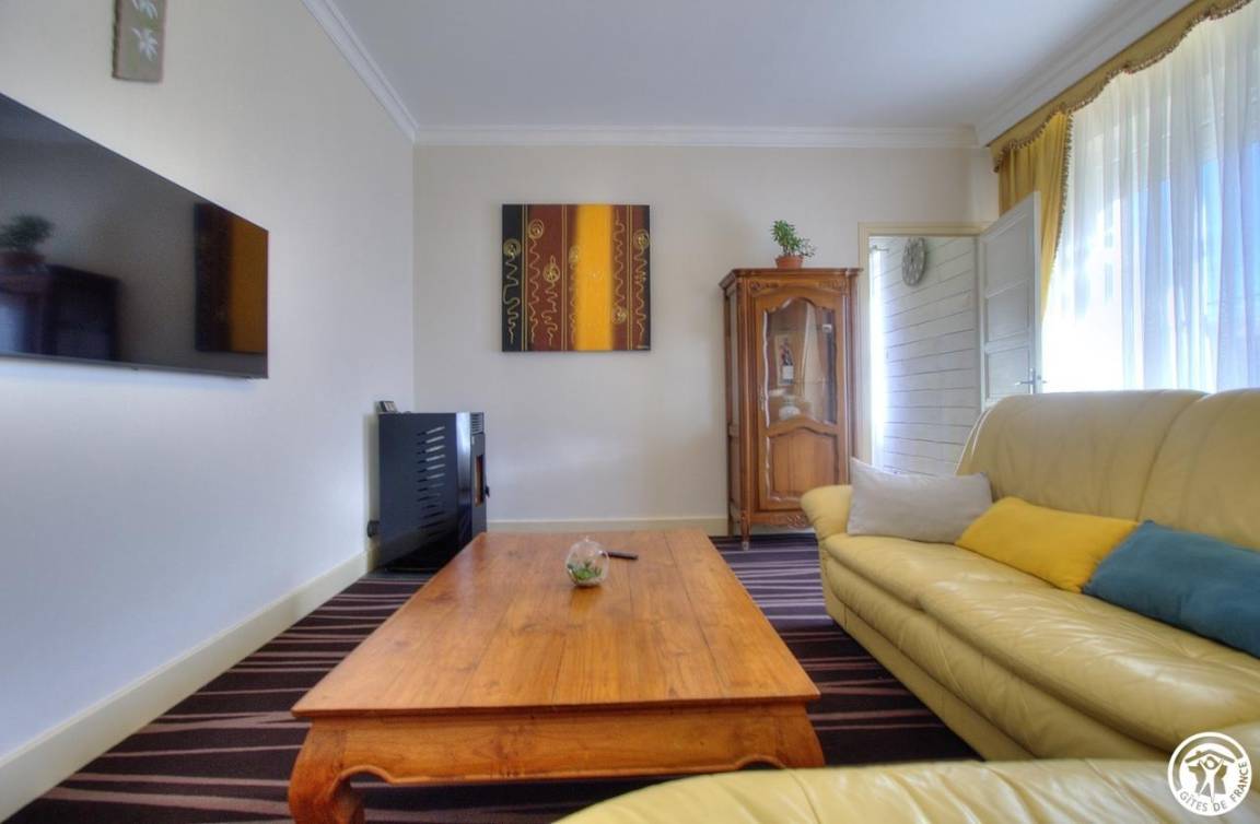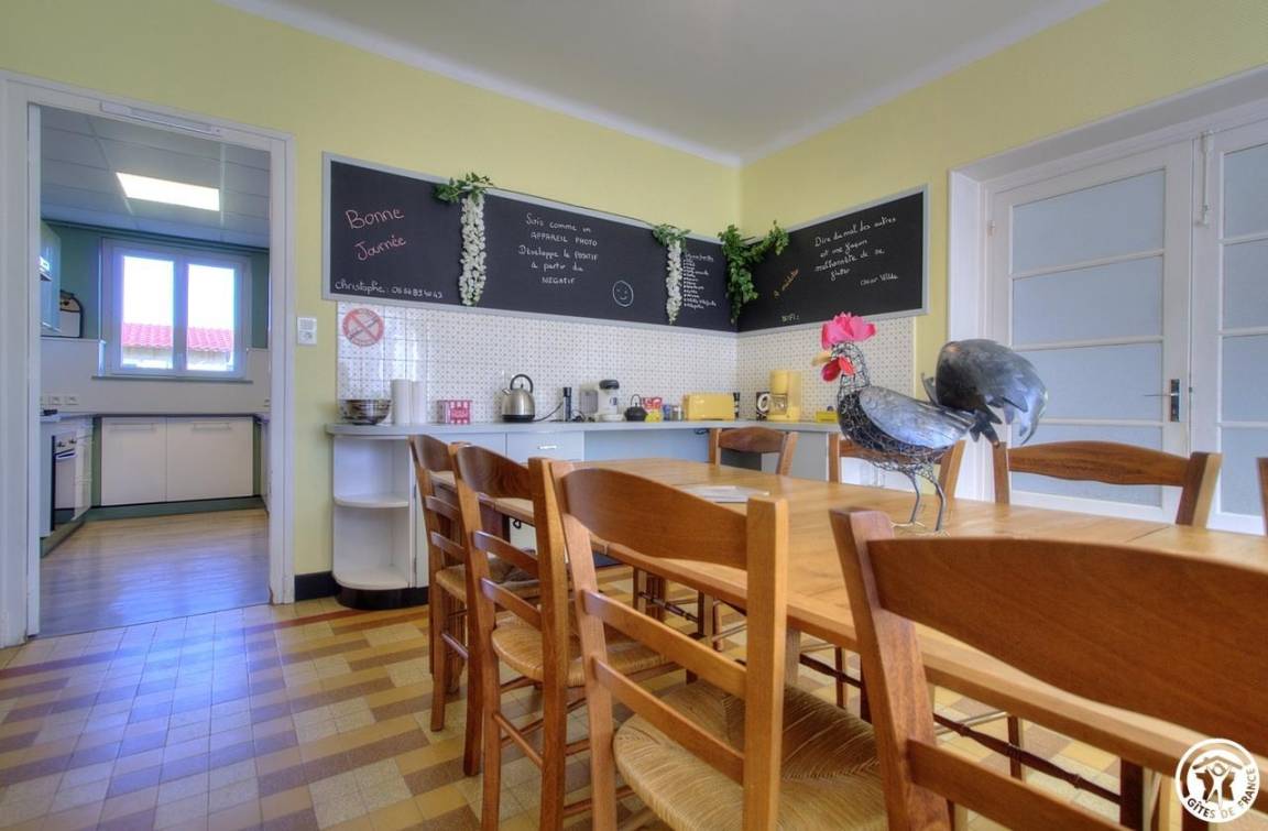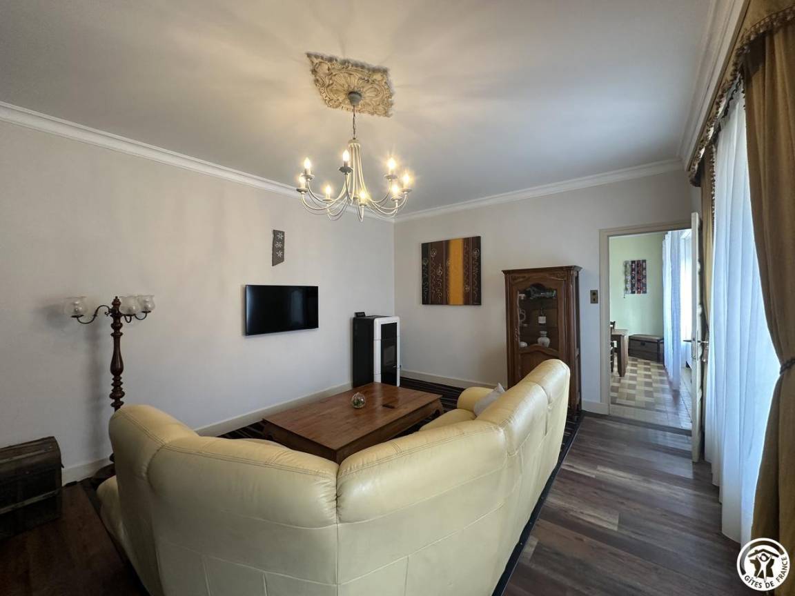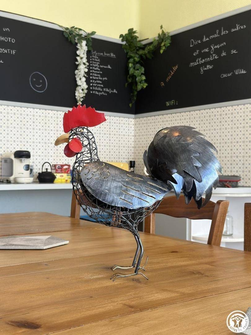 Nachdem wir die Umgebung erkundet haben, entdecken wir das Haus. Dieses 150 m² große, möblierte Touristenobjekt ist eine Doppelhaushälfte. Die Einrichtung ist warm und einladend und vermittelt ein familiäres Wohngefühl. Ein schattiger Innenhof bietet im Sommer Privatsphäre und lädt zu ausgedehnten Abenden ein.