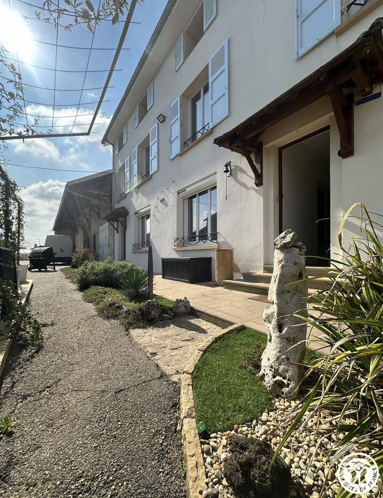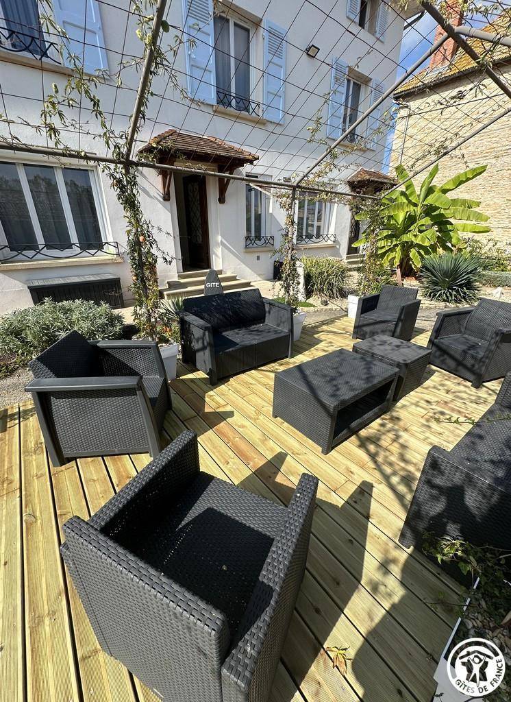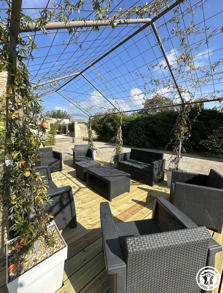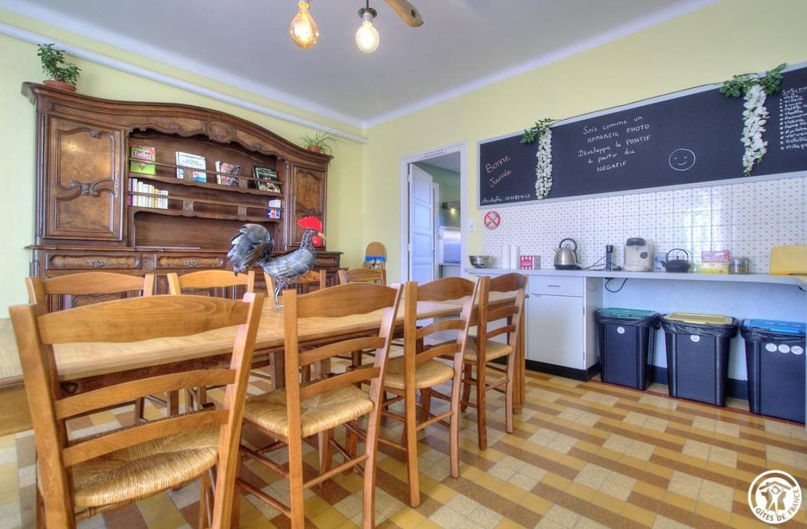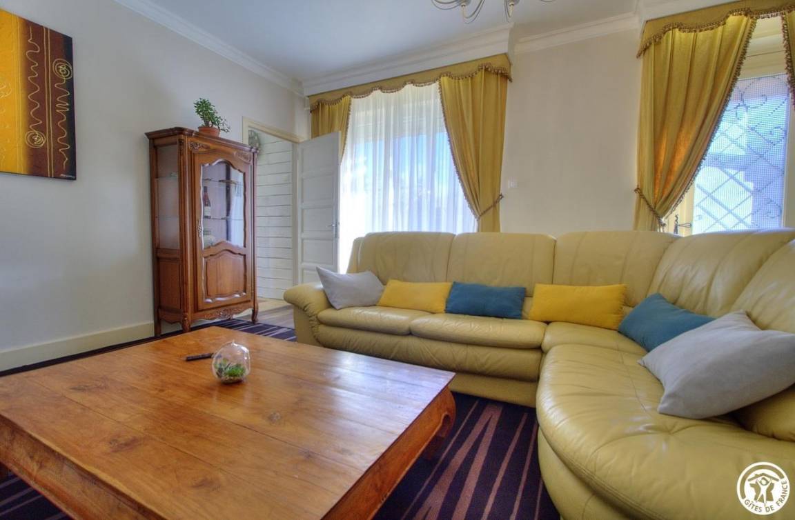 Nachdem wir die Umgebung erkundet haben, entdecken wir das Haus. Dieses 150 m² große, möblierte Touristenobjekt ist eine Doppelhaushälfte. Die Einrichtung ist warm und einladend und vermittelt ein familiäres Wohngefühl. Ein schattiger Innenhof bietet im Sommer Privatsphäre und lädt zu ausgedehnten Abenden ein.