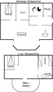 SchlafverhältnisseDie Schlafplätze verteilen sich auf 3 Schlafräume. 4 Schlafplätze in Doppelbetten. 2 Schlafplätze in Einzelbetten. 2 Schlafplätze auf einer Doppelschlafcouch.