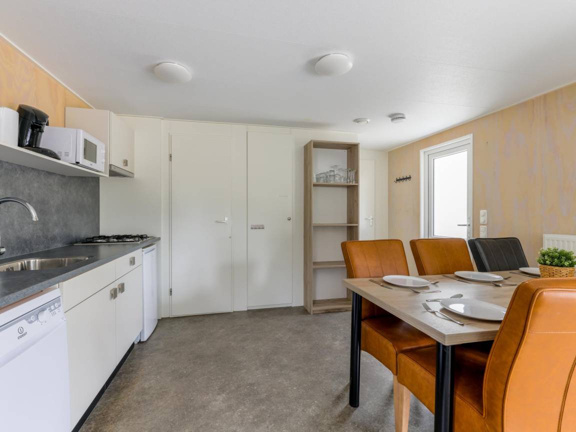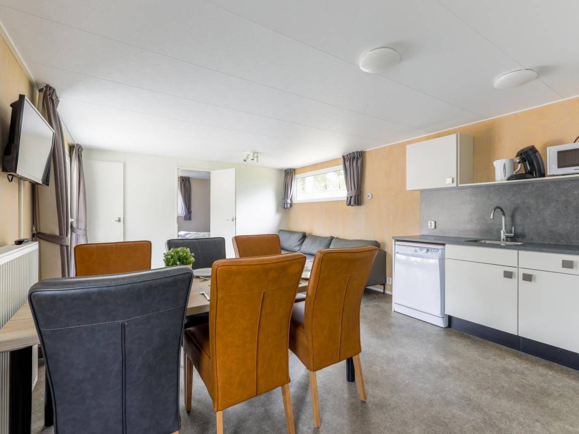 Hausbeschreibung : Ein gemütlicher Campingplatz in Brabant, auf dem es viel zu erleben gibt: Schwimmen im Pool, Volleyball und Tennis, Spielen auf dem Spielplatz oder auf dem großen Trampolin, Angeln im campingplatzeigenen Fischteich, Teilnahme an der Kinderanimation und vieles mehr. Das ist der Ausgangspunkt für dieses schöne Chalet. Das Chalet hat eine moderne Küche, eine schöne offene Sitzecke und gute Betten. Und das alles in einer waldreichen Umgebung. Kurz gesagt, perfekt für einen schönen Urlaub