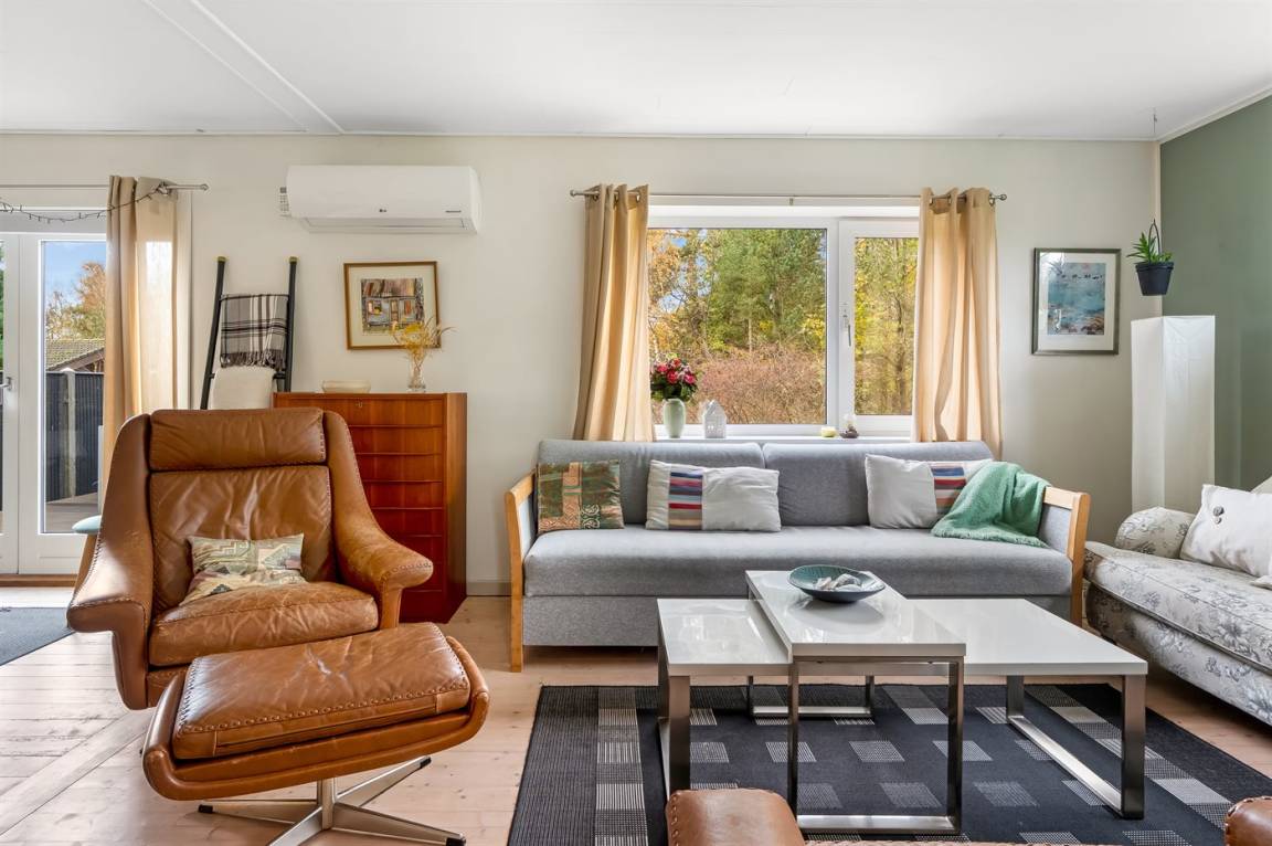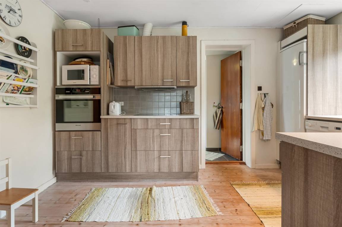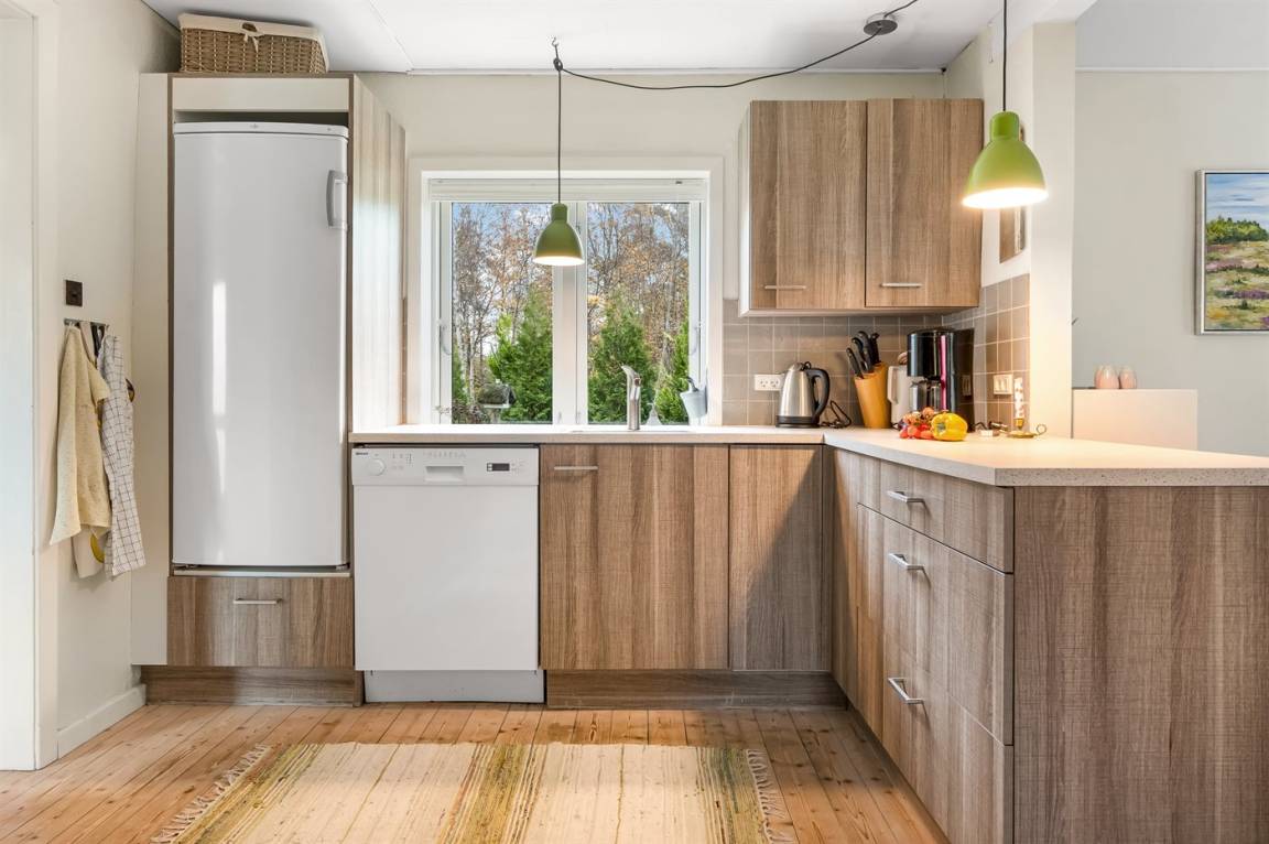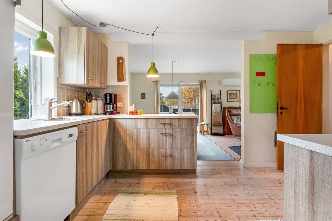 Das Ferienhaus wurde renoviert und verfügt über eine neue Küche und ein neues Badezimmer. Der Eingangsbereich ist geräumig und bietet Waschmaschine, Trockner. Große, helle Küche mit offenem Essbereich und Wohnzimmer mit Kaminofen. Vom Wohnzimmer gelangst du auf die große, schöne Terrasse.