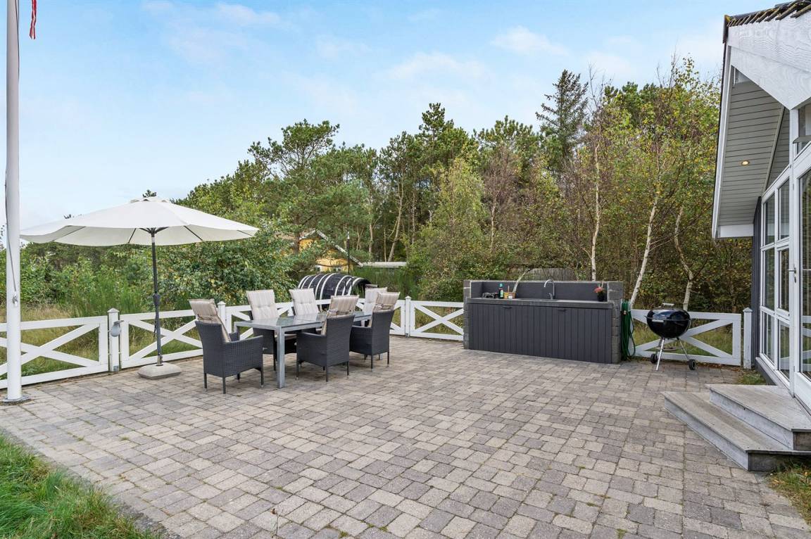 Gemütliches, gut eingerichtetes Ferienhaus in ruhiger Lage auf einem Naturgrundstück mit Heidekraut – ganz in der Nähe von Læsøs bestem Sandstrand. Vom Haus aus hast du Blick auf die Dünen des Strandes, einen Hauch vom Meer und wunderschöne Sonnenuntergänge. Die Sonne kannst du auf einer der drei offenen Terrassen genießen, wo du immer ein windgeschütztes Plätzchen findest. Hier lässt sich auch das Abendessen genießen, nachdem du es in der Außenküche auf der Terrasse zubereitet hast.