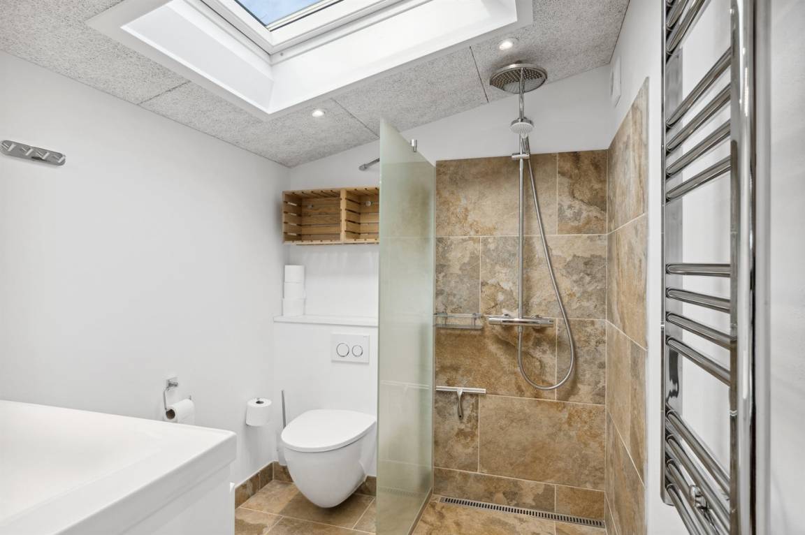 Das Haus ist mit 2 neuen Badezimmern eingerichtet, beide mit Fußbodenheizung, Waschbecken, Duschnische und Toilette.