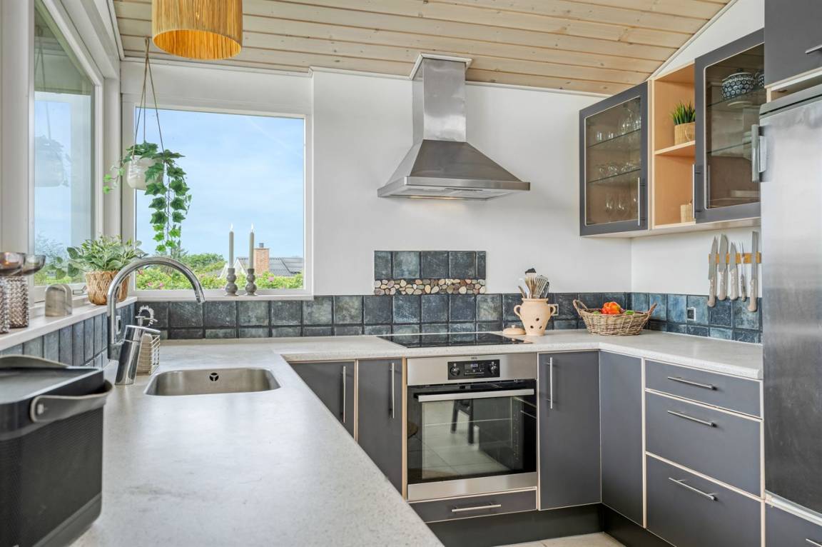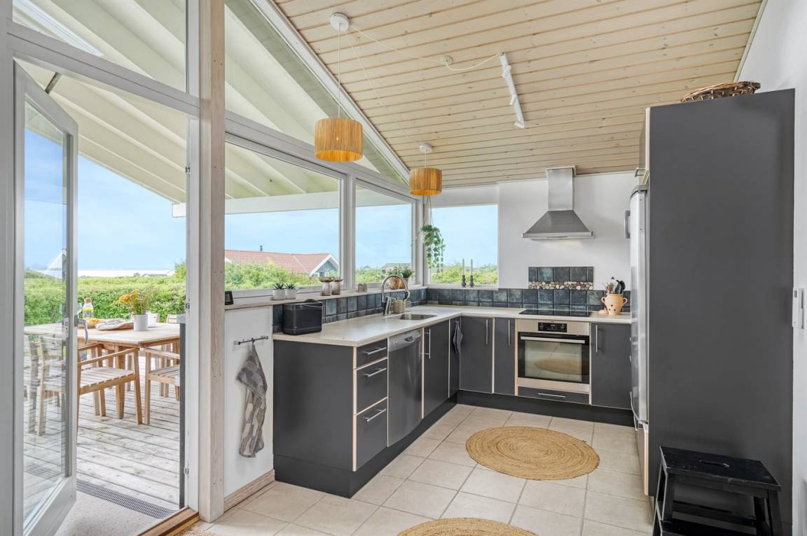 Das Haus ist unter anderem mit einer schönen und modernen Wohnküche eingerichtet, wo die Fenster einen herrlichen Blick über die Bucht "Krik Vig" ermöglichen. Genieße Stunden im Freien auf der großen Terrasse, wo man eine Mahlzeit oder eine gute Tasse Kaffee genießen kann.