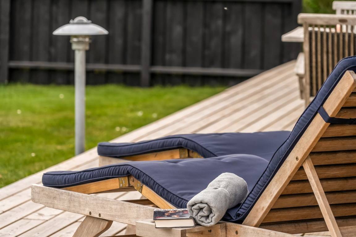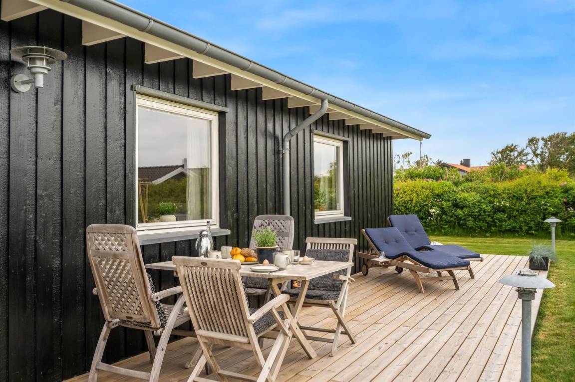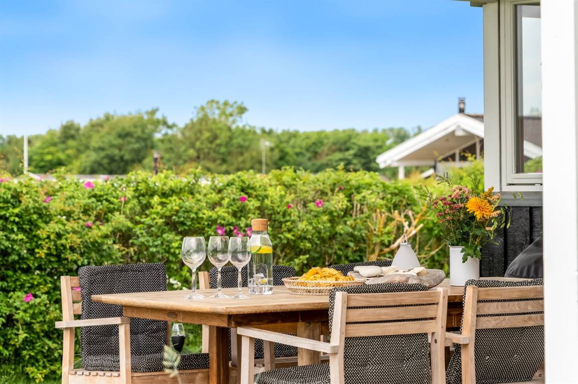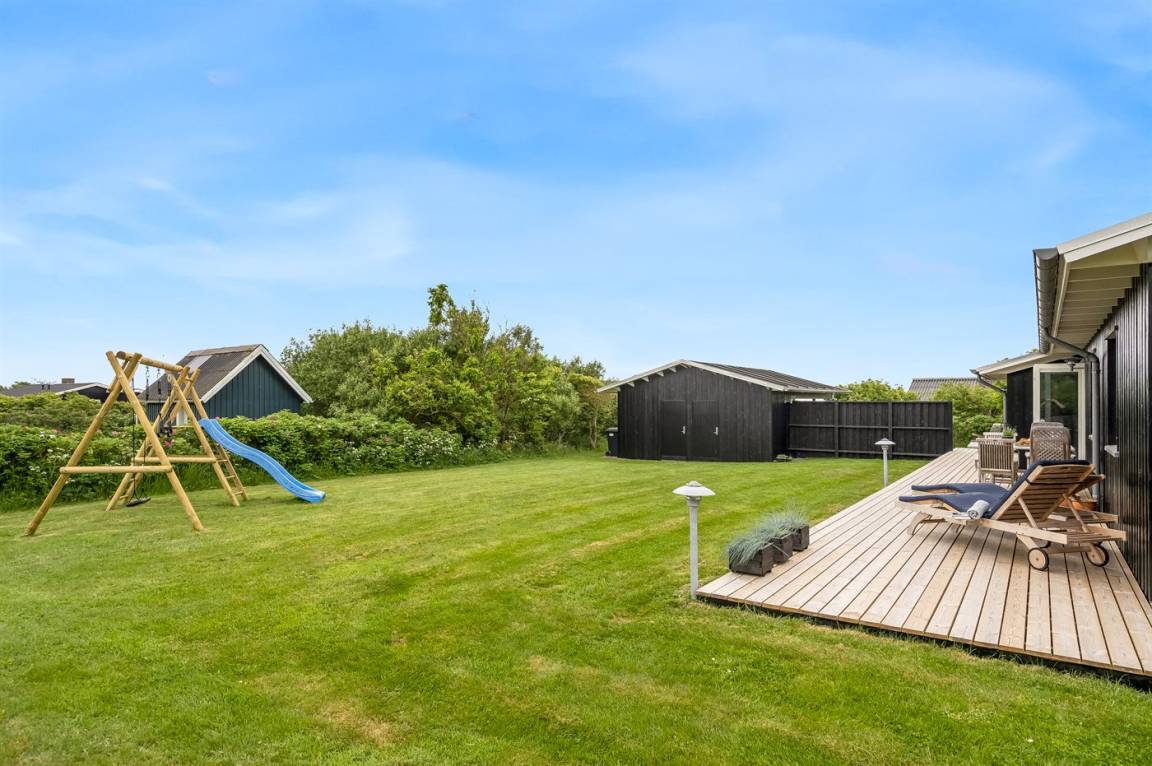 DraußenDie Ferienunterkunft liegt auf einem 1000 m² großen Naturgrundstück. Die Entfernung zum Meer beträgt 200 m. Die Entfernung zum Fjord beträgt 300 m. Die nächste Einkaufsmöglichkeit liegt 1500 m entfernt. In einem Abstand von 7000 m gibt es einen Golfplatz. Es steht ein 100 m² Terrassenareal zur Verfügung. Geräteraum. Schaukel.Lagerfeuerstelle. Es steht ein Grill zur Verfügung. Es steht ein Carport zur Verfügung. Parkplatz auf dem Grundstück.