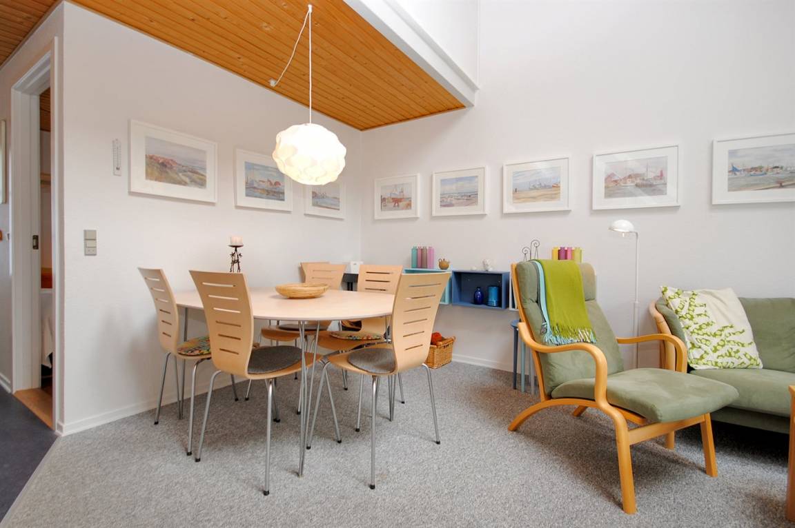Schöne und nett möblierte Ferienwohnung in der Ferienanlage Agger Havn Feriecenter. Zur Wohnung gehört eine Terrasse mit Gartentisch und Gartenstühle sowie eine Loungecouch aus Paletten. Folgende kostenlose Gemeinschaftseinrichtungen stehen zur Verfügung: Swimmingpool, Sauna, Tischtennis, Beachvolley, Minigolf, Petanquebahn und großer Spielplatz. Billard können gegen Zahlung benutzt werden. Außerdem Münzwäscherei mit Waschmaschinen und Wäschetrockner vor Ort. Übrigens: Die schwimmhalle ist ab Ostern bis zur 42 KW geöffnet. In der Ferienanlage stehen 4 Ladestecker (Ladeleistung 11 kW) für Elektroautos zur Verfügung.