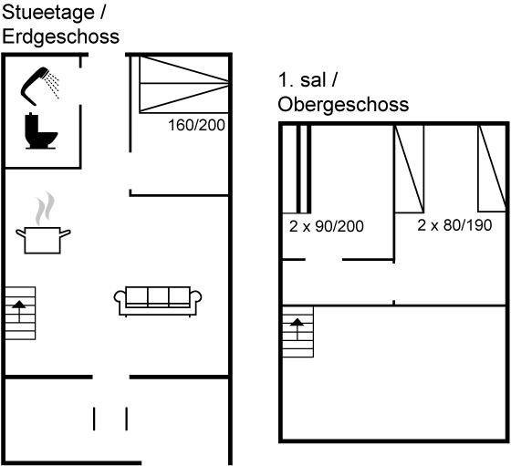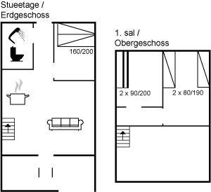 SchlafverhältnisseDie Schlafplätze verteilen sich auf 3 Schlafräume. 2 Schlafplätze in einem Doppelbett. 2 Schlafplätze in Einzelbetten. 2 Schlafplätze in einem Etagenbett. Ferner steht ein Kinderbett zur Verfügung.