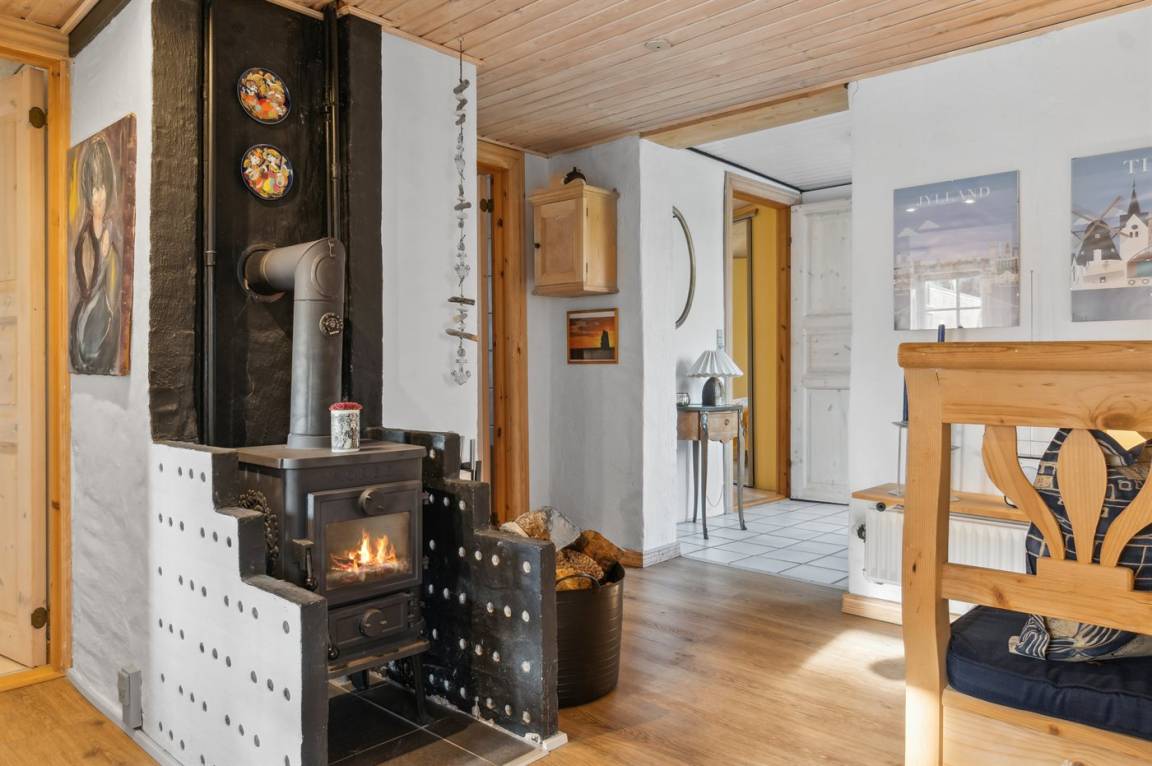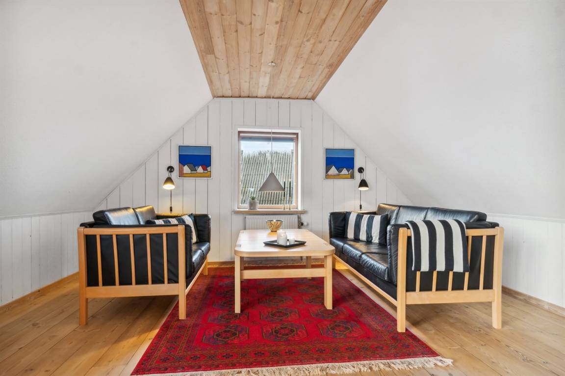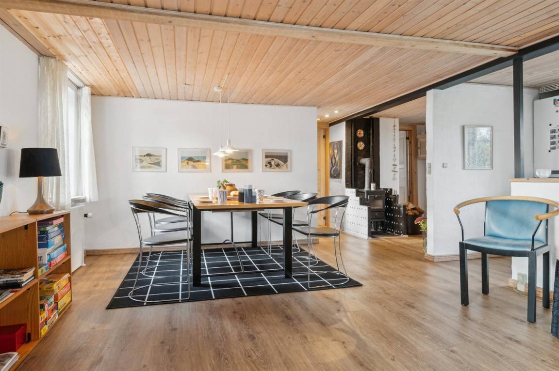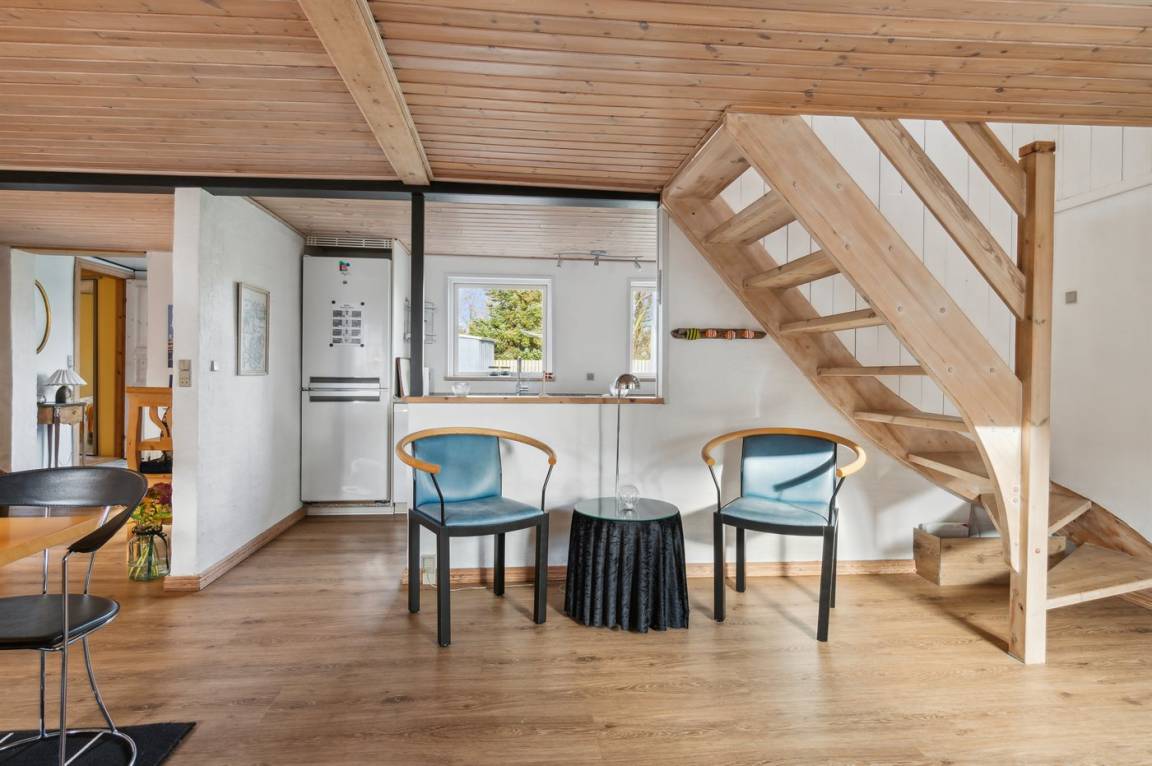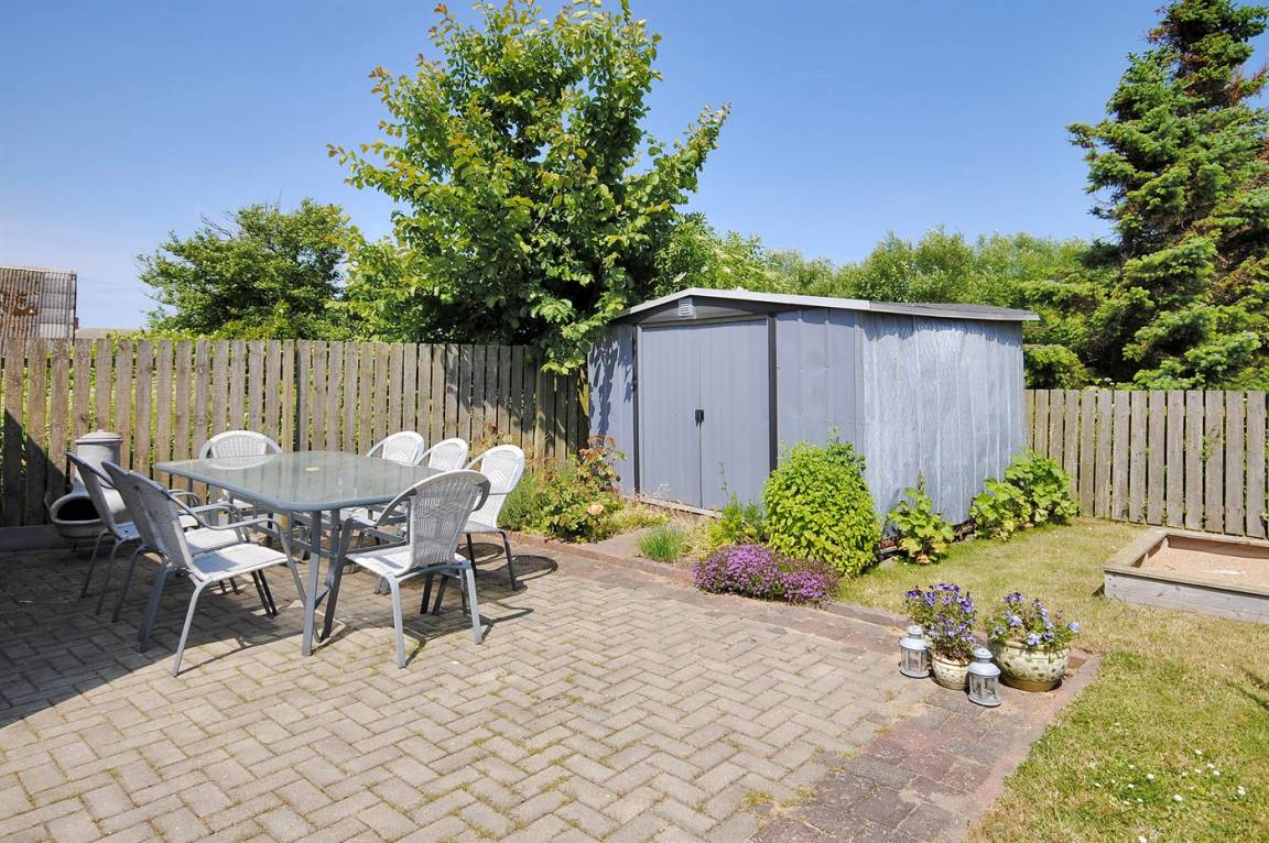 DraußenDie Ferienunterkunft liegt auf einem 494 m² großen Gartengrundstück. Das Grundstück ist eingezäunt. Die Entfernung zum Meer beträgt 3000 m. Die Entfernung zum Fjord beträgt 40 m. Die nächste Einkaufsmöglichkeit liegt 2500 m entfernt. In einem Abstand von 8000 m gibt es einen Golfplatz. Es steht ein 28 m² Terrassenareal zur Verfügung. Geräteraum.An Sommerabenden sorgt der Außenkamin für eine gemütliche Atmosphäre. Es steht ein Carport zur Verfügung.
