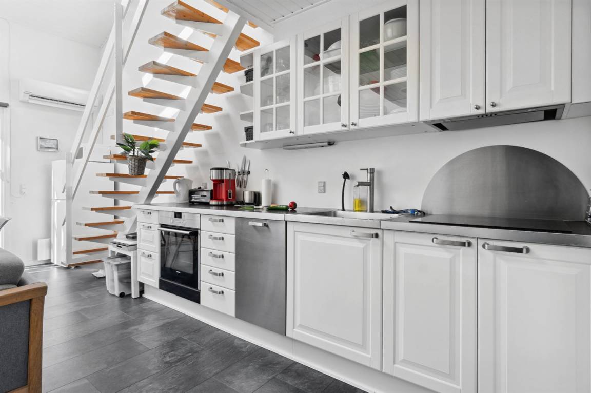 DraußenDie Ferienunterkunft liegt auf einem 74 m² großen Naturgrundstück. Die Entfernung zum Meer beträgt 1500 m. Die Entfernung zum Fjord beträgt 100 m. Die nächste Einkaufsmöglichkeit liegt 1600 m entfernt. Davon insgesamt 14 m² geschlossene Terrasse. Parkplatz auf dem Grundstück.