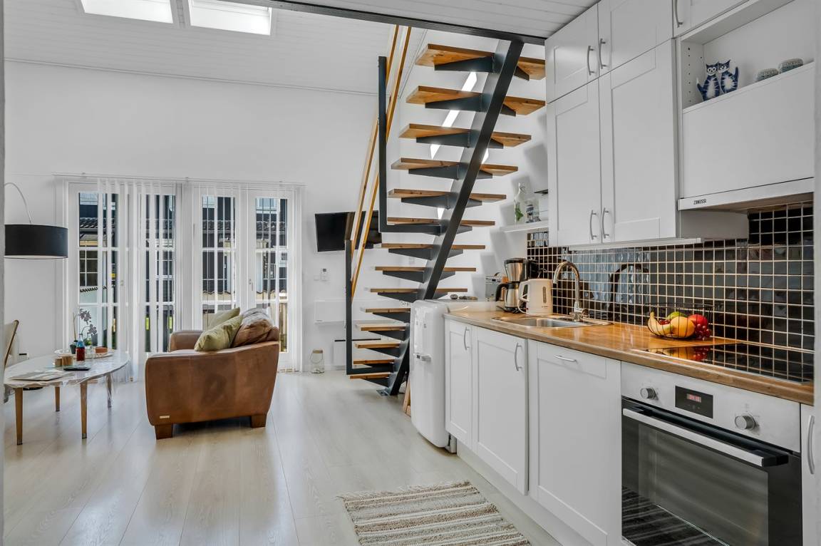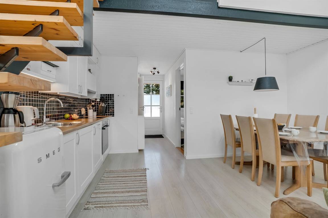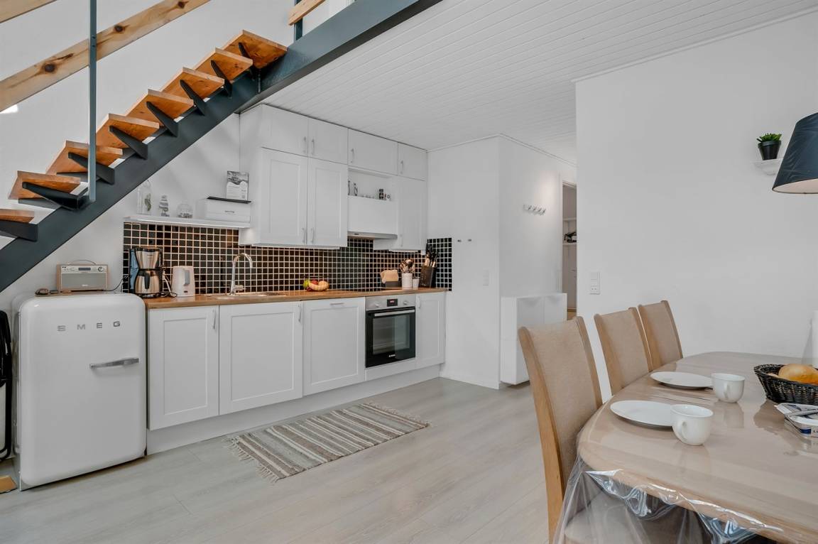 DraußenDie Ferienunterkunft liegt auf einem 74 m² großen Naturgrundstück. Die Entfernung zum Meer beträgt 1500 m. Die Entfernung zum Fjord beträgt 100 m. Die nächste Einkaufsmöglichkeit liegt 1600 m entfernt. Es steht ein 14 m² Terrassenareal zur Verfügung.