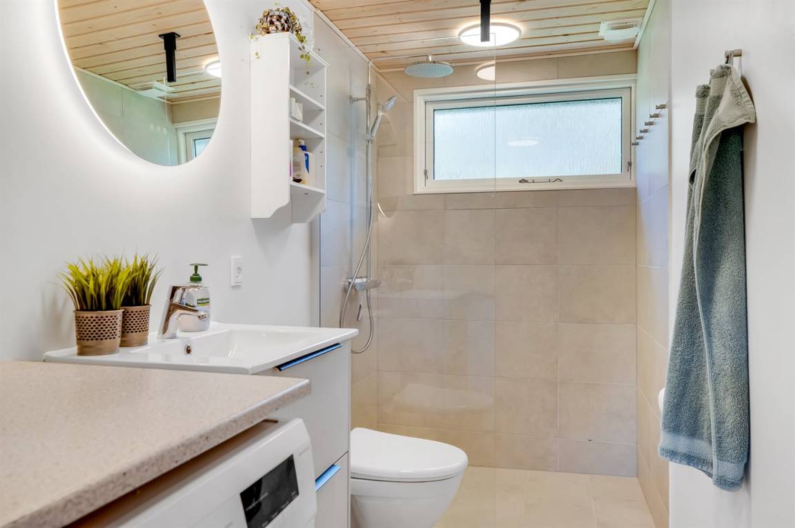 Gepflegtes Ferienhaus – u.a. ist das Badezimmer im Jahr 2025 renoviert. Das Haus ist in einem ruhigen Urlaubsgebiet auf einem undgestörten und windgeschützten Grundstück gelegen. Das Ferienhaus verfügt über eine überdachte Terrasse für gemütliche Stunden und Abendessen vom Grill.