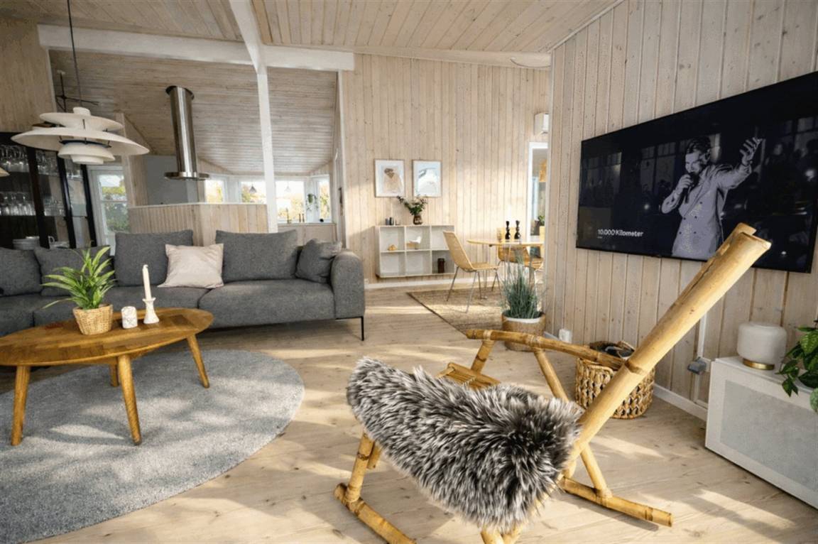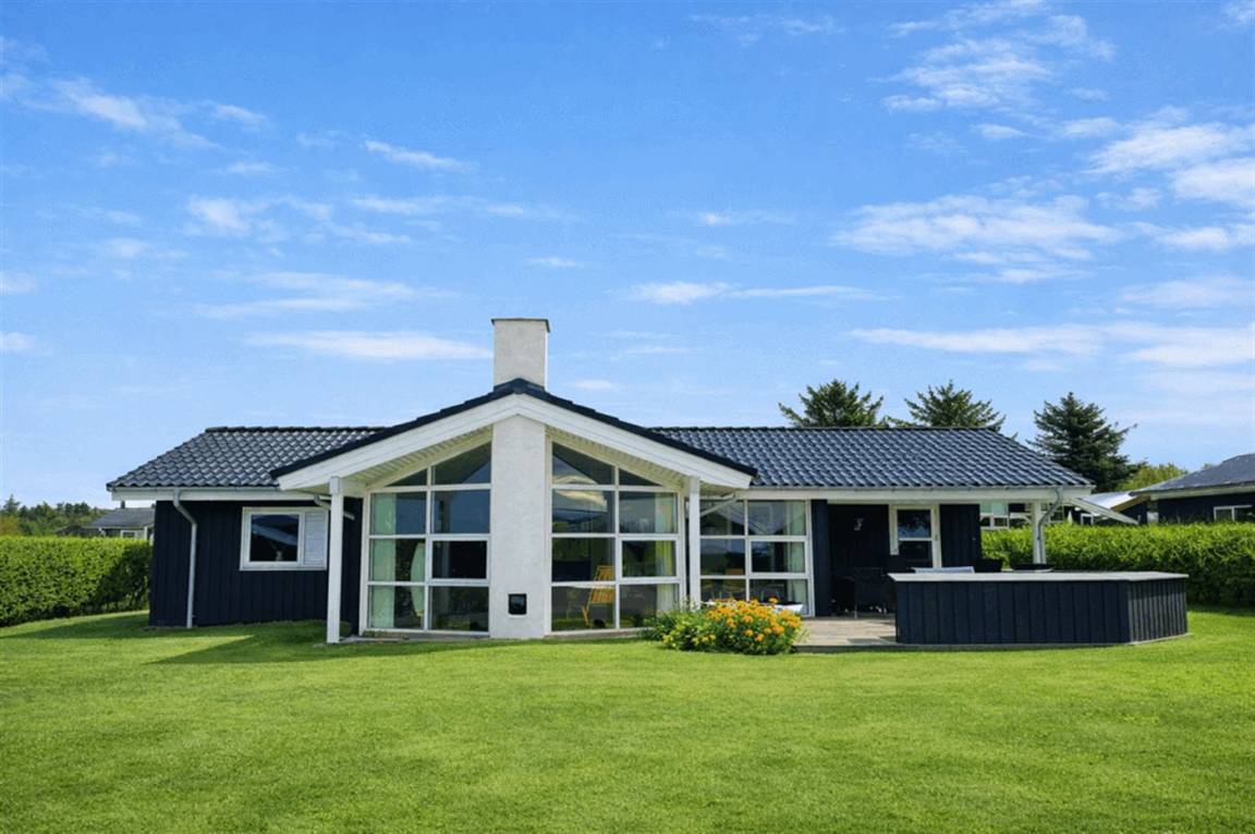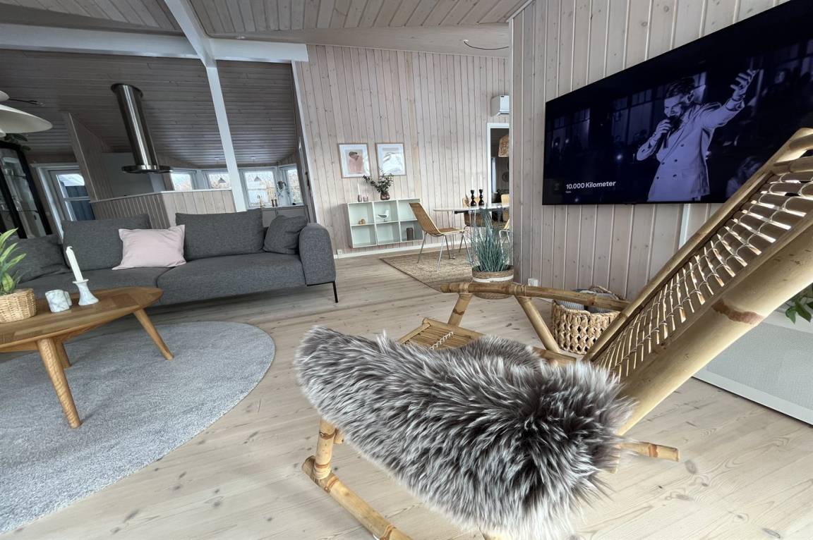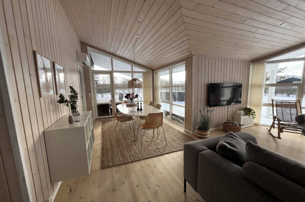 Im schönen Kærgården findet ihr dieses luxuriöse Ferienhaus mit großen, einladenden Schlafzimmern mit elektrisch verstellbaren Betten, einer Wohnküche mit der herrlichsten Aussicht auf den Fjord und einem Hot Tub für die kühlen Abende.