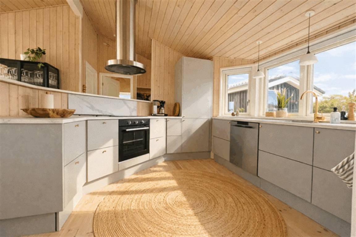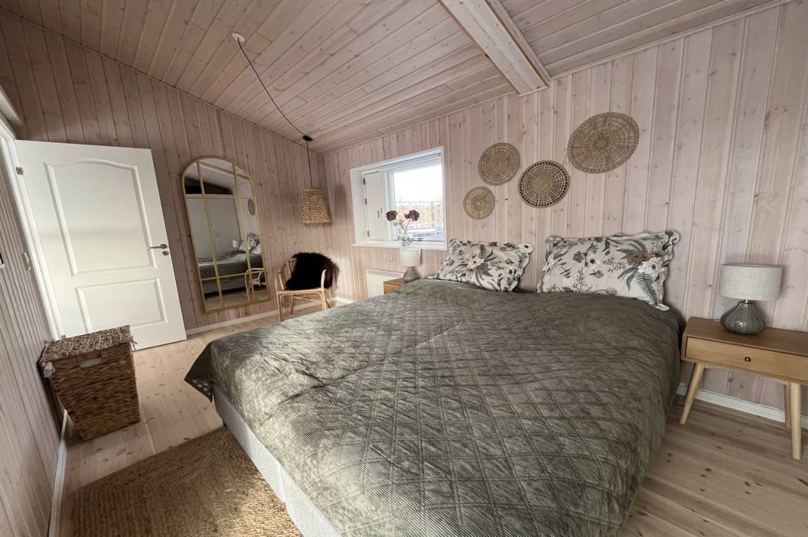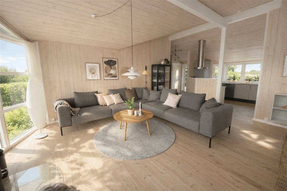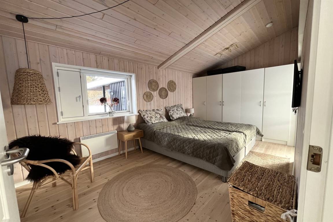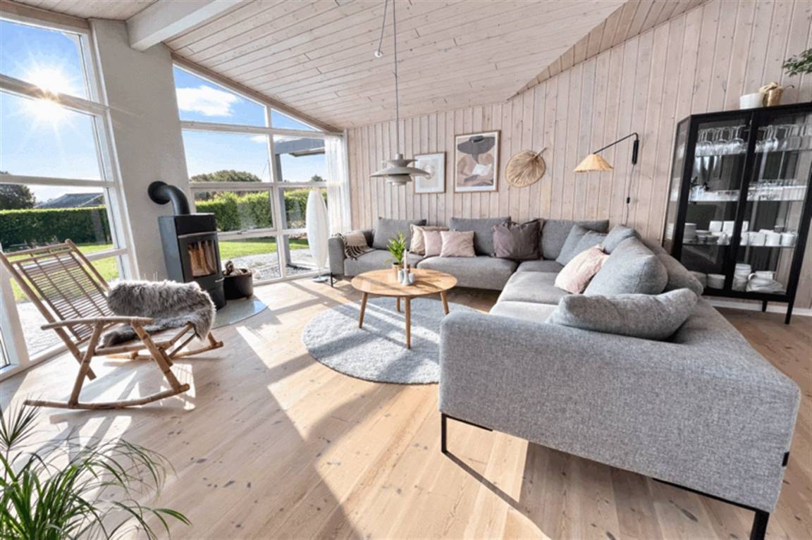 Im schönen Kærgården findet ihr dieses luxuriöse Ferienhaus mit großen, einladenden Schlafzimmern mit elektrisch verstellbaren Betten, einer Wohnküche mit der herrlichsten Aussicht auf den Fjord und einem Hot Tub für die kühlen Abende.