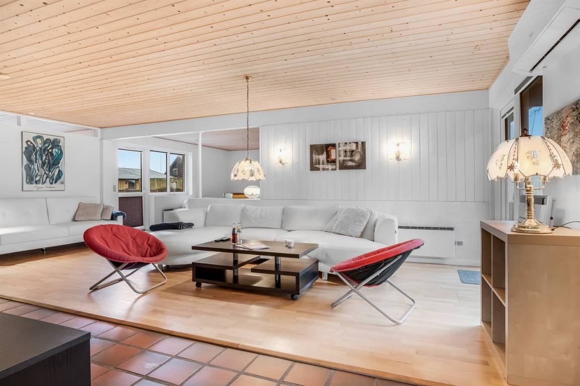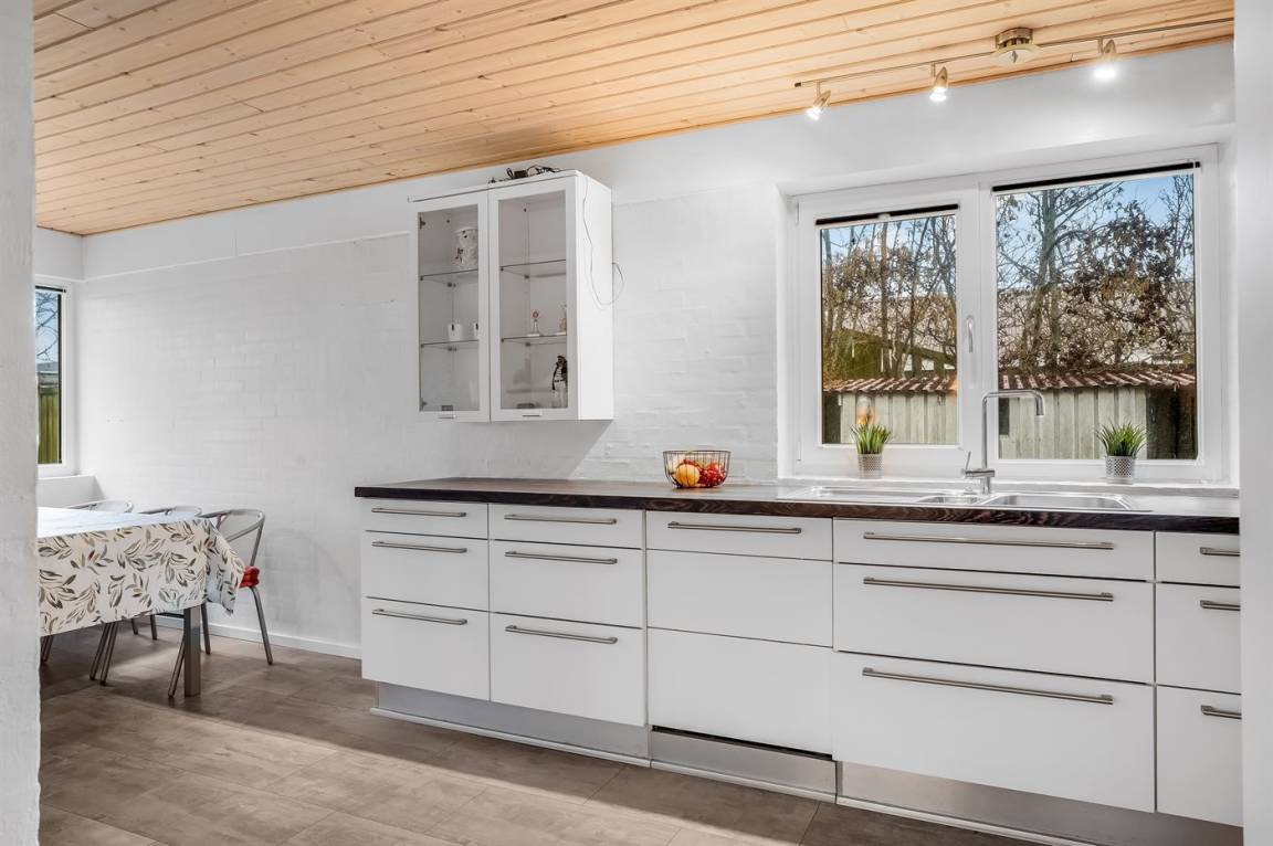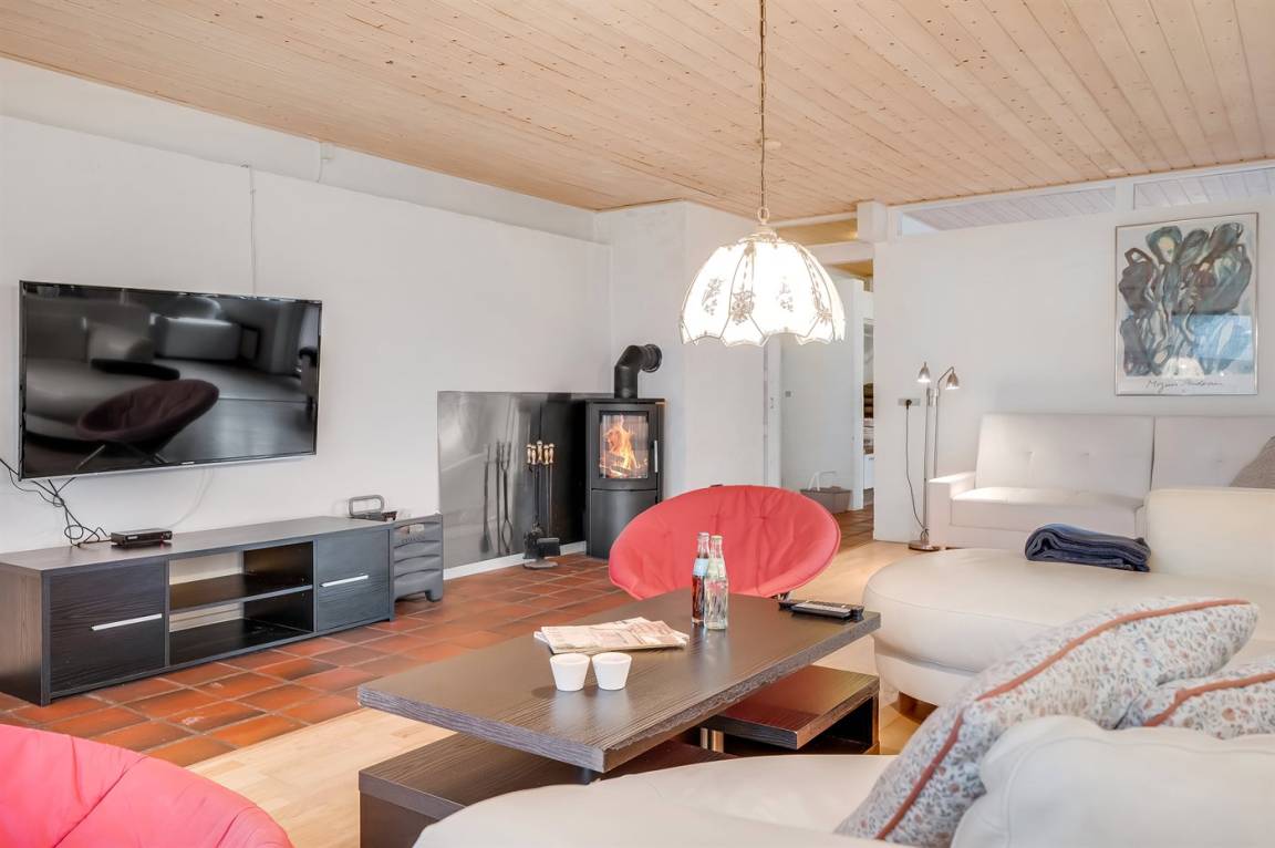 DraußenDie Ferienunterkunft liegt auf einem 935 m² großen Naturgrundstück. Das Grundstück ist eingezäunt. Die Entfernung zum Meer beträgt 800 m. Die Entfernung zum Fjord beträgt 500 m. Die nächste Einkaufsmöglichkeit liegt 300 m entfernt. Es steht ein offenes Terrassenareal zur Verfügung. Es steht ein Carport zur Verfügung. Parkplatz auf dem Grundstück.