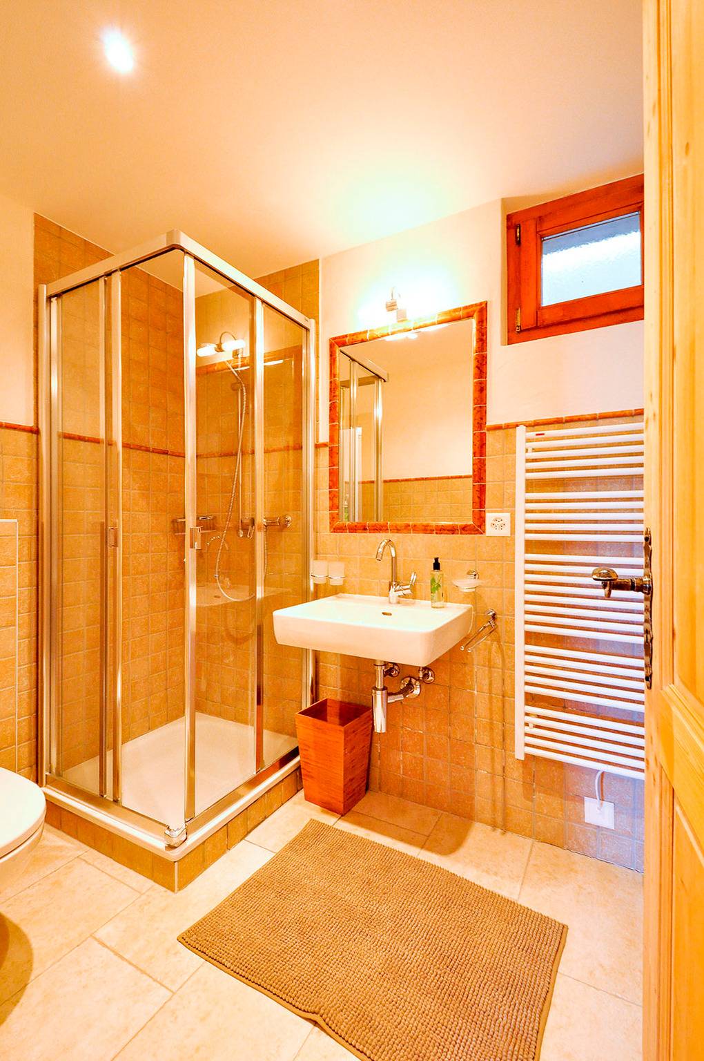 Parterre: Zwei schöne Doppelzimmer mit Schreibtisch. 4-Bettzimmer mit 2 Etagenbetten, Schreibtisch. Bad: Bw/Du, Wb, WC. Weiteres Bad: Du, Wb, WC. Separates WC.